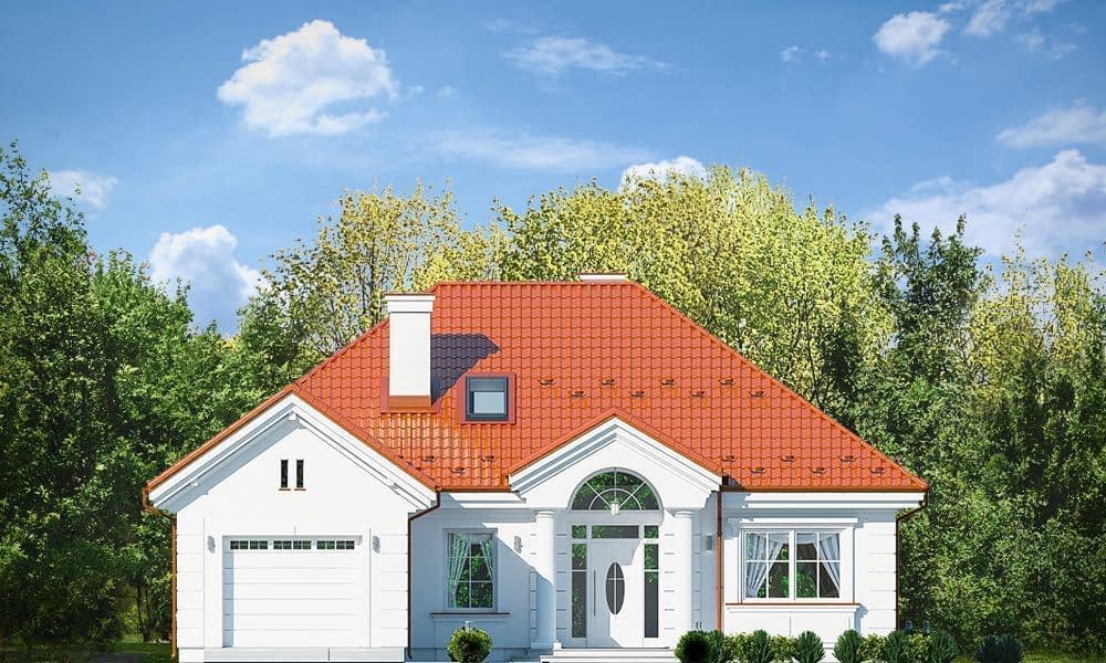 Projekt domu Dom na parkowej 5 jest to kolejny projekt z popularnej serii „Domów na parkowej”, czyli wersja z dachem o większym kącie nachylenia, oraz węższej bryle i pojedynczym garażu. Dom na parkowej 5 jest mniejszy od wersji bazowej i nadaje się na węższą działkę. Dach o kącie 35 stopni z kolei pozwoli sprostać ostrzejszym warunkom zabudowy, a poza tym uzyskujemy nad parterem większe poddasze użytkowe (właściwie strych, który można zaadaptować na poddasze użytkowe jeśli jest taka potrzeba). Architektura domu to nawiązanie do amerykańskich willi z przedmieść, oraz do polskiego dworku, ale w nowocześniejszym ujęciu. Bryła budynku jest prostokątna, przekryta czterospadowym dachem, z dobudowanym wystającym nieco do przodu garażem. W ten sposób przed domem tworzy się większa i bardziej reprezentacyjna część frontowa. Wejście domu zostało podkreślone pięknym frontowym portalem z szerokimi drzwiami z naświetlami po bokach. Od strony ogrodowej mamy z kolei duży zadaszony taras, oraz szerokie przeszklenie łączące salon z tarasem i ogrodem. Wnętrze domu podzielono funkcjonalnie na trzy części: dzienną, nocną i gospodarczo-garażową. Z ładnego przedsionka przechodzimy szerokimi drzwiami na wprost do części dziennej, z salonem, kuchnią i holem. Z części dziennej przechodzimy do sypialni - mamy tutaj trzy sypialnie oraz łazienkę. Sypialnie dzieci mają wbudowane szafy, sypialnia rodziców – garderobę. Z przedsionka możemy też przedostać się do pomieszczenia gospodarczego i garażu. Na strychu mamy miejsce do zaadaptowania na poddasze składające się z dwóch pokoi i łazienki. Projekt domu Dom na parkowej 5 to doskonała propozycja dla osób planujących niewielki dom, ale nie chcących rezygnować z urody, ani godzić się na maksymalne uproszczenie detalu architektonicznego. Projekt domu Dom na parkowej 5 dzięki prostej bryle i konstrukcji będzie niedrogi w realizacji, a dom dzięki zastosowaniu nowoczesnych i energooszczędnych materiałów, oraz instalacji, będzie też tani w późniejszej eksploatacji. Zapraszamy do zapoznania się z pełną ofertą pracowni MG Projekt: projekt domu Dom na parkowej, projekt domu Dom na parkowej 2, projekt domu Dom na parkowej 3, projekt domu Dom na parkowej 4, projekt domu Dom na parkowej 6, projekt domu Dom na parkowej 7 A, projekt domu Dom na parkowej 7 B.