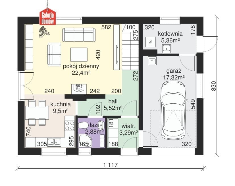 Ładny, mały dom, który proponuje komfortowe rozwiązania. Jego zaletą jest przystępność. Oparty na prostej konstrukcji, przykryty dwuspadowym dachem dom z użytkowym poddaszem będzie świetnie wyglądał w każdym miejscu. Na parterze znajdzie się wystarczająco dużo miejsca na dziecięce zabawy – albo imprezy w gronie przyjaciół, które przeniosą się latem do ogródka. Do dyspozycji przyszłych właścicieli będzie przecież spory taras z szerokim przejściem do pokoju dziennego. Poddasze to miejsce na sen i relaks w dużym, wydzielonym pokoju kąpielowym.Konstrukcja