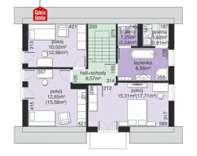 Dach: kąt nachylenia 40°, pokrycie - dachówka ceramiczna lub betonowa.