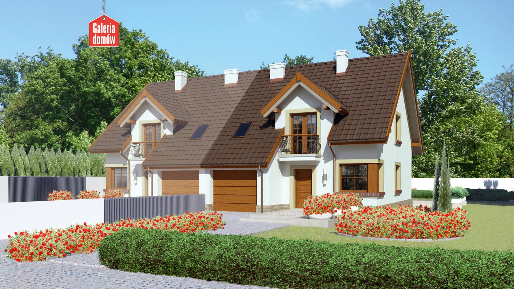 Dach: kąt nachylenia 40°, pokrycie - dachówka ceramiczna lub betonowa.