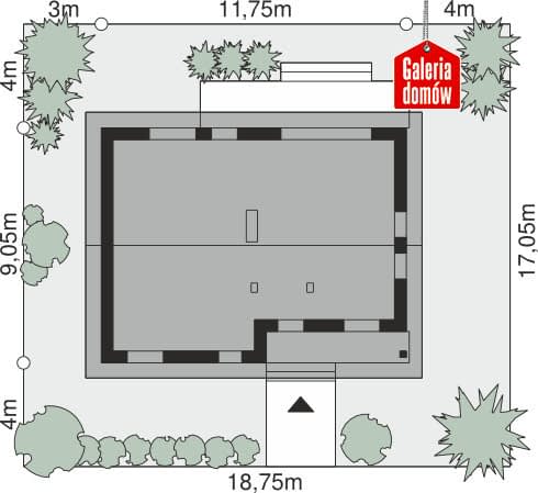 - Minimalne wymiary działki18.75 x 17.05m