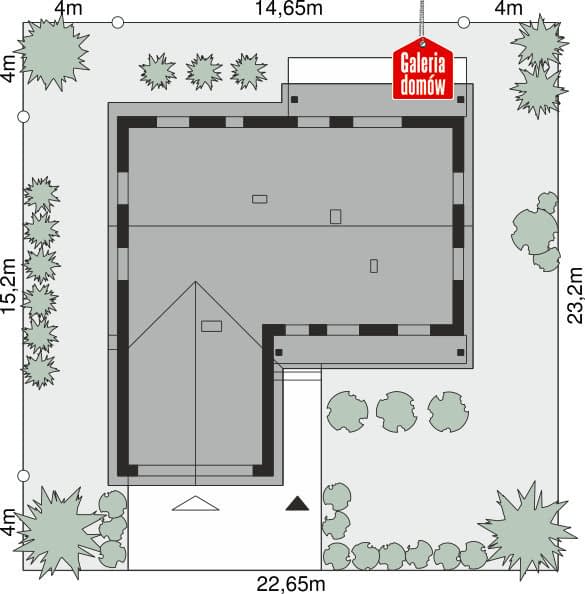 Dach: kąt nachylenia 30°, pokrycie - dachówka ceramiczna lub betonowa.