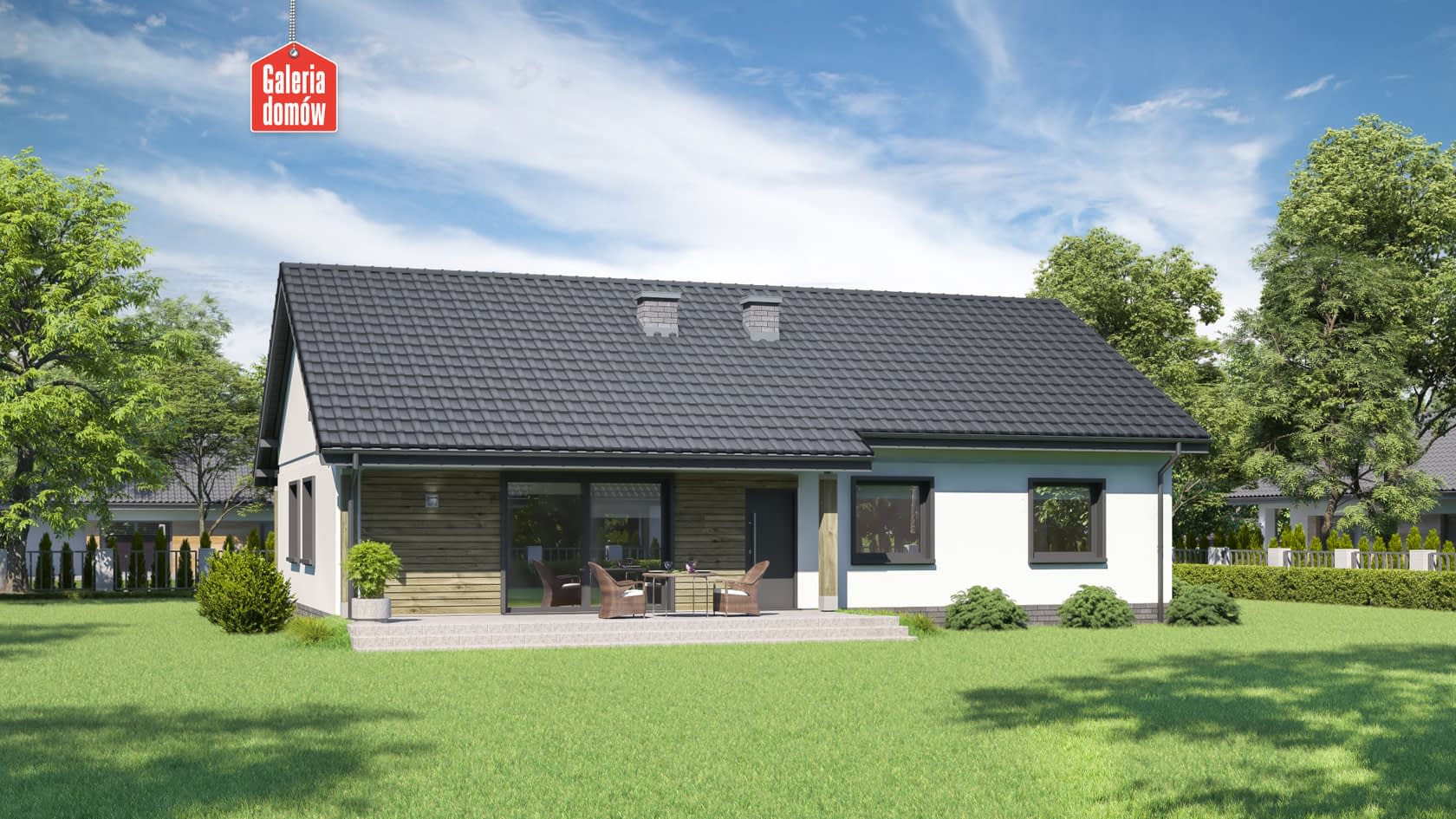 Dom przy Bukowej 29 to energooszczędny budynek parterowy o powierzchni 120.00 m². Układ funkcjonalny przewiduje 4 pokoje, 2 łazienki, kotłownię i otwartą strefę pobytu dziennego. Kuchnia o powierzchni 12,5 m² jest oddzielona od salonu ladą. Pokój dzienny (34.05 m²) posiada przesuwne drzwi tarasowe, co ułatwia komunikację z zieloną strefa ogrodu. Cała przestrzeń jest dobrze doświetlona – posiada 4 okna. Na granicy salonu i kuchni przewidziano miejsce na stół jadalniany. We wnęce ulokowano elegancki kominek. Dom posiada prosty dach dwuspadowy i regularne kształty, przez co jest tani i szybki w budowie. Wykończony w oparciu o najmodniejsze trendy architektoniczne, z wykorzystaniem ciepłych odcieni drewna i biało czarnej kolorystyki elewacji i dachu. Średniej wielkości dom parterowy, który przy niewielkich rozmiarach jest w stanie pomieścić dużą rodzinę.Konstrukcja