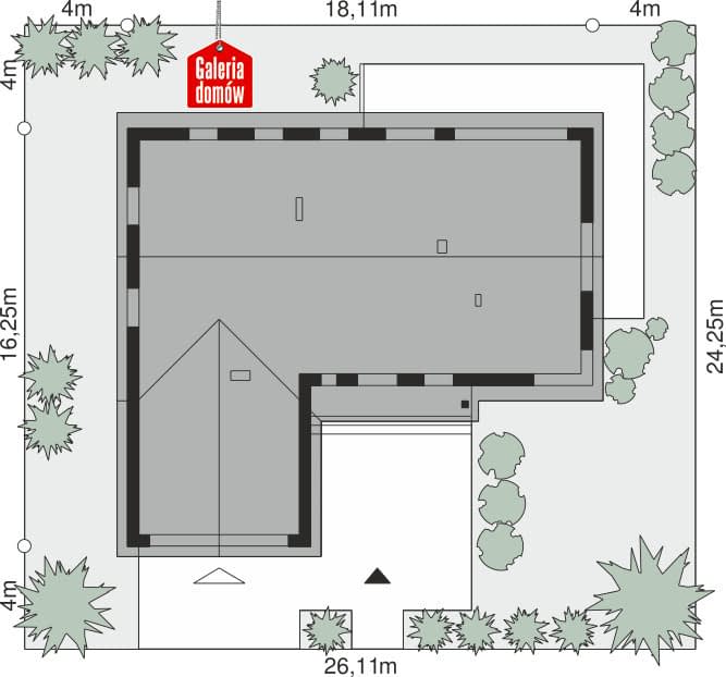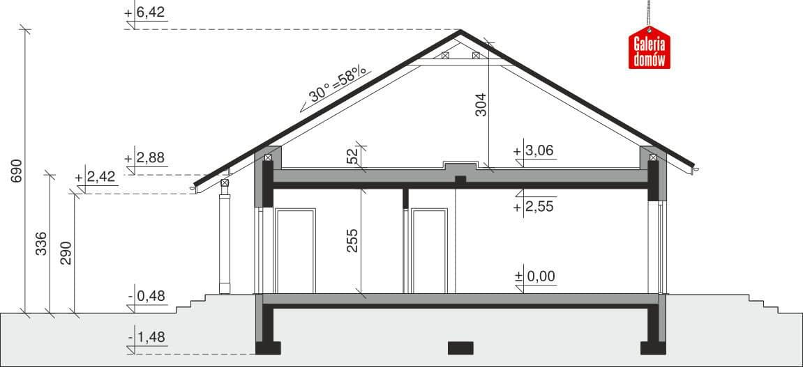 Dach: kąt nachylenia 30°, pokrycie - dachówka ceramiczna lub betonowa.