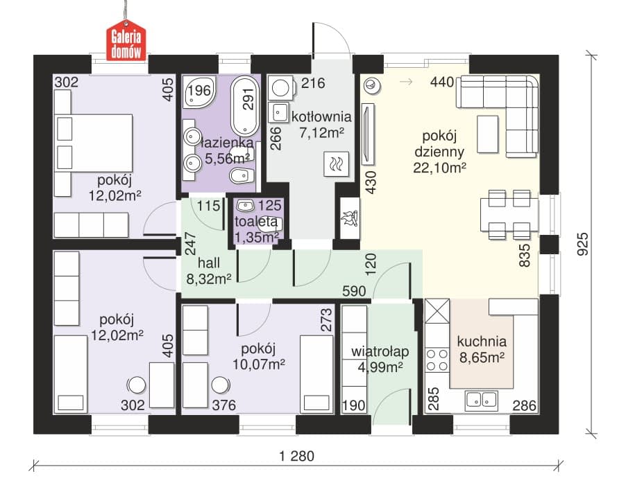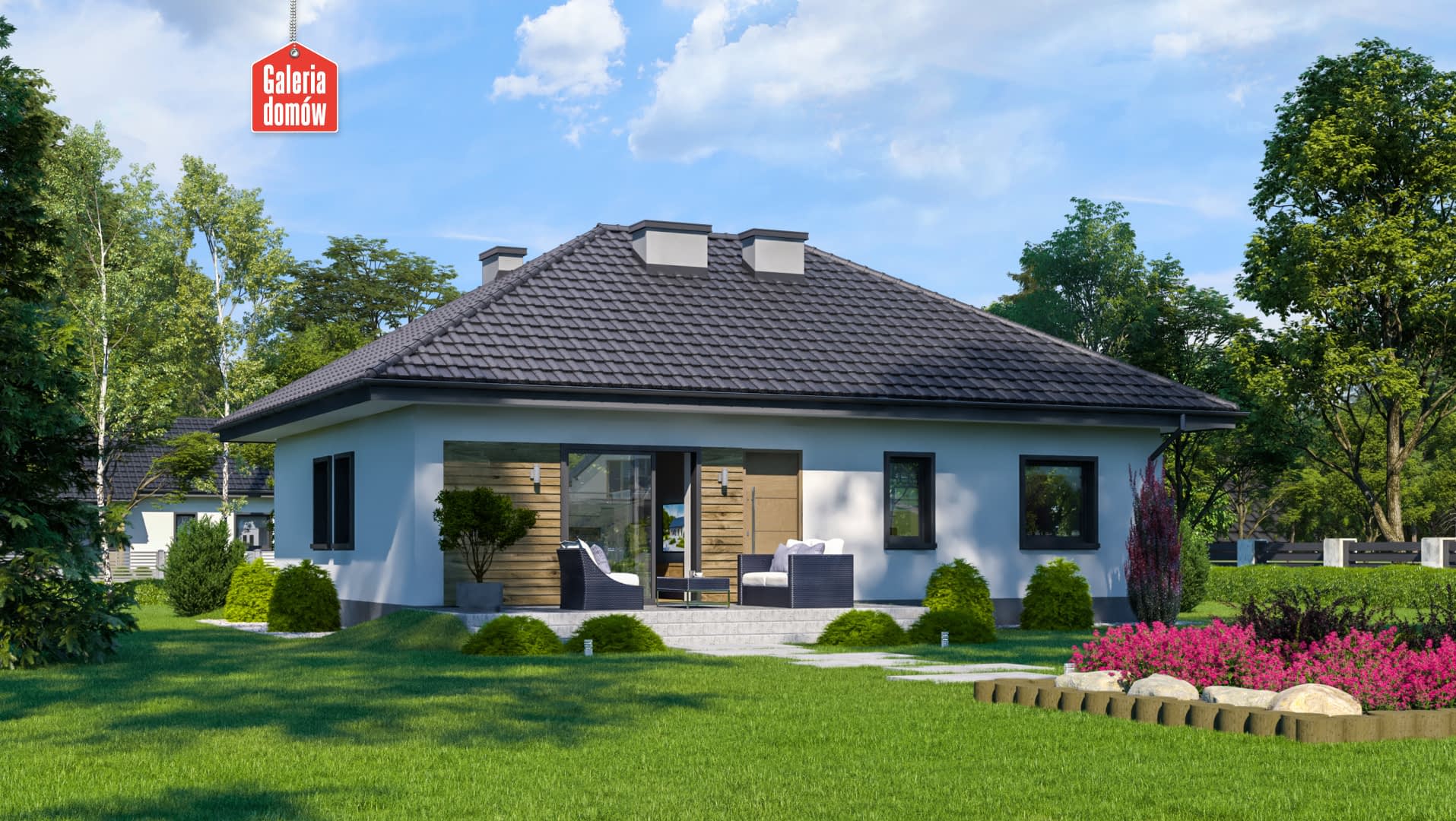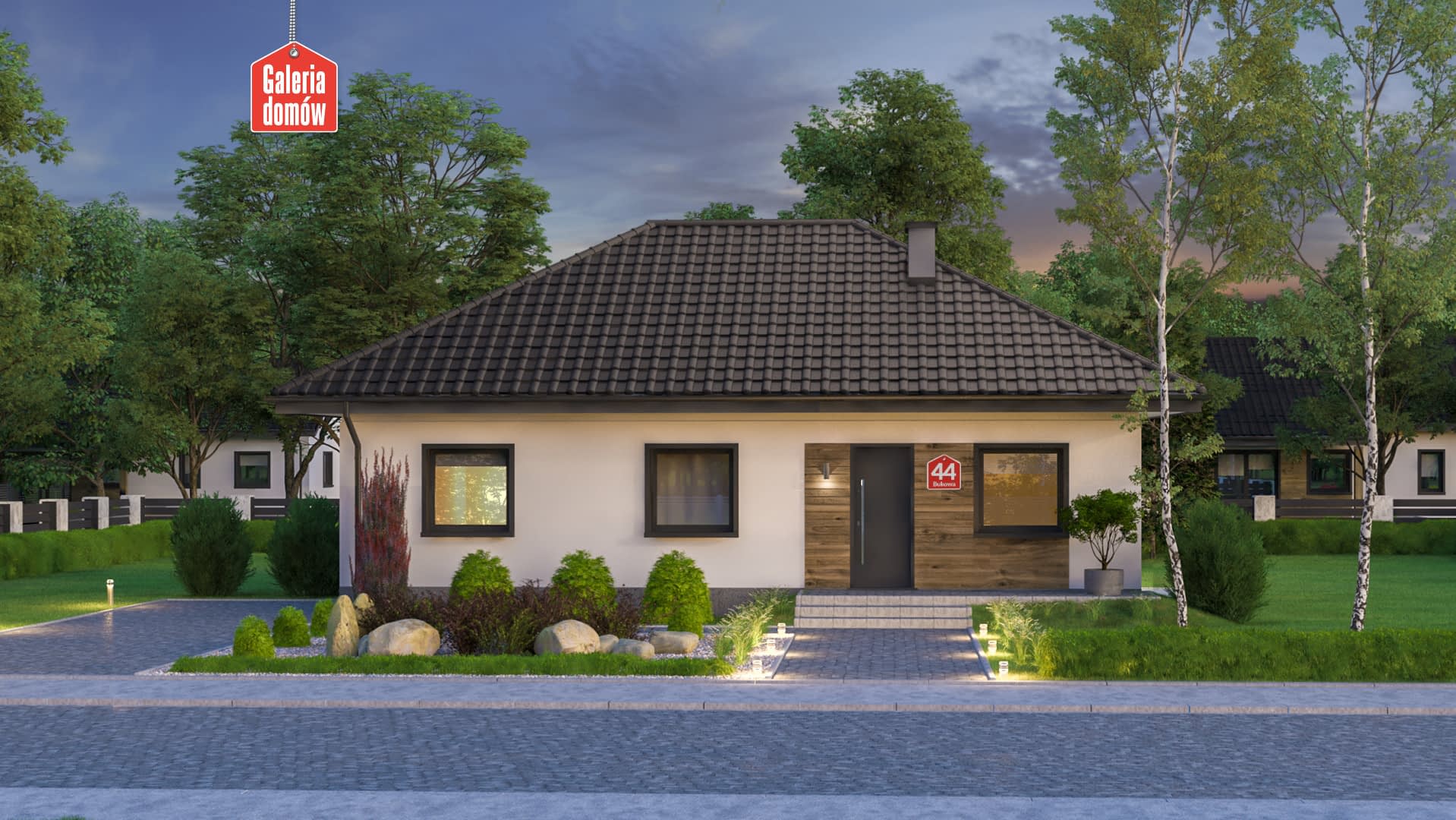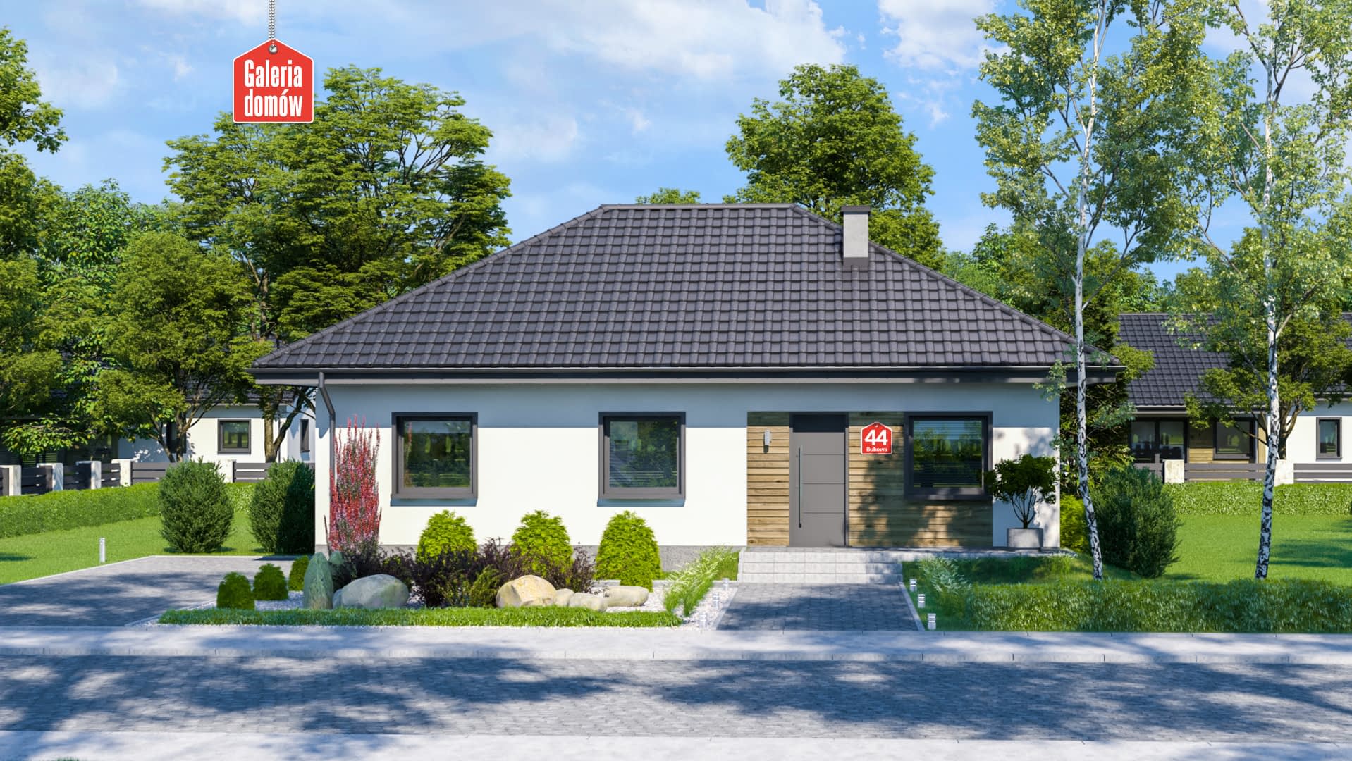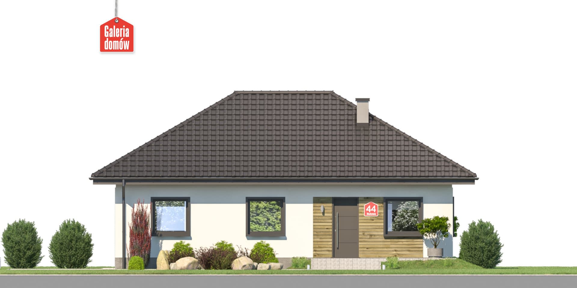 Gotowy projekt Dom przy Bukowej 44 to propozycja niewielkiego parterowego domu z dachem czterospadowym. Wykonany w technologii tradycyjnej, murowanej i dostosowany do warunków technicznych WT 2021. Układ funkcjonalny przewiduje otwartą część dzienną, na którą składa się salon i kuchnia. Bukowa 44 oferuje ponadto 3 sypialnie, pralnię połączoną z kotłownią, kompletnie wyposażoną łazienkę oraz dodatkową toaletę. Elewacja budynku została ozdobiona naturalnym drewnem i jest utrzymana w nowoczesnej stylistyce. Budynek, dzięki przemyślanej konstrukcji, jest szybki i tani w budowie oraz ekonomiczny w użytkowaniu. Doskonały wariant dla 4-5 osobowej rodziny, ceniącej komfort parterowego domu, połączony z ekonomią użytkowania.Konstrukcja