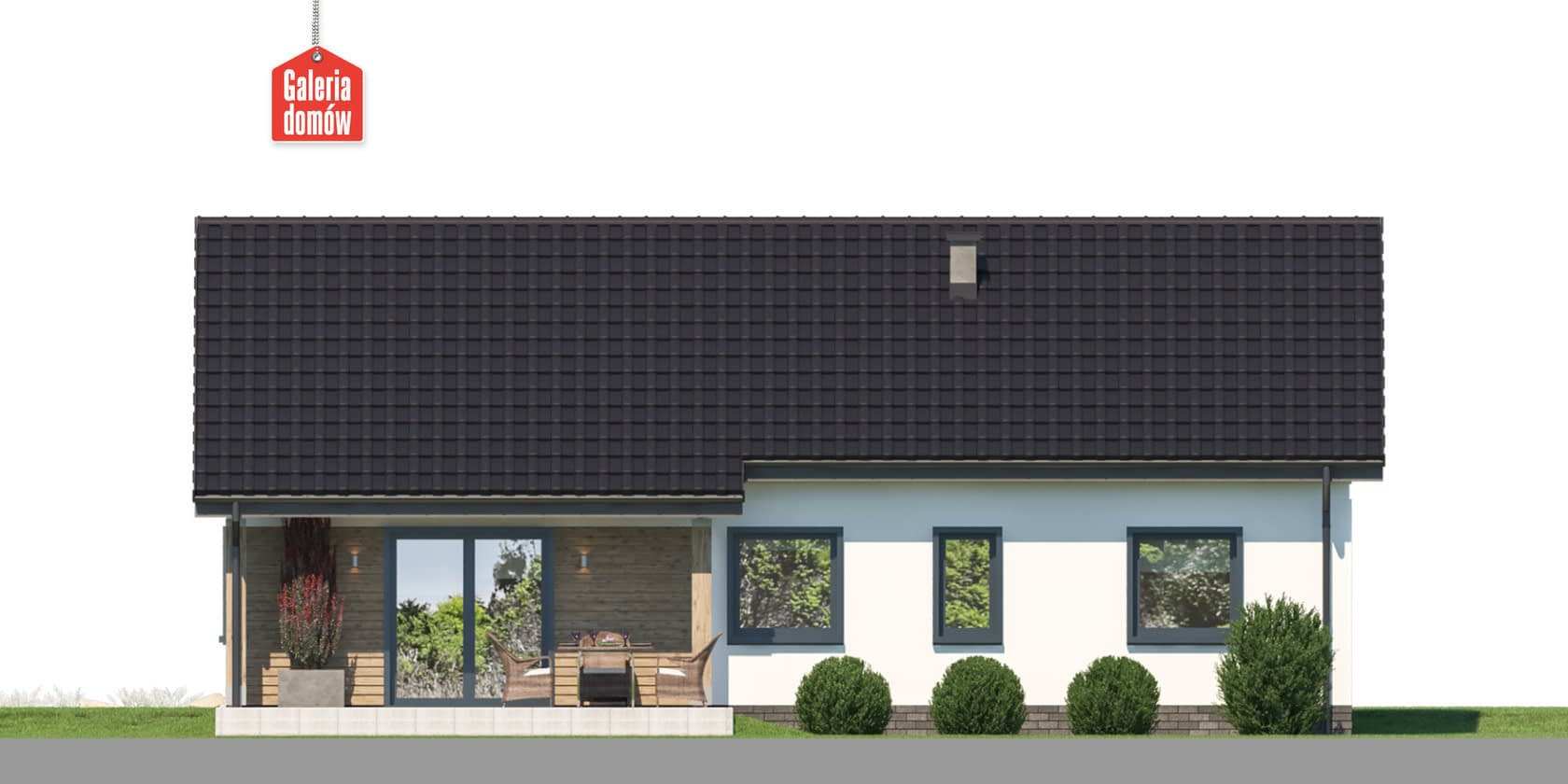 Dom w Bukowej 56 to projekt domu parterowego o powierzchni użytkowej 100 m². Łatwy w budowie i ekonomiczny w eksploatacji. Idealne rozwiązanie do realizacji na małych działkach. Układ funkcjonalny składa się z 3 sypialni, otwartej kuchni, salonu, 2 łazienek oraz kotłowni z pralnią. Elewacja jest utrzymana w nowoczesnym stylu. Do jej ozdobienia użyto wysokiej jakości materiałów. Czarny dach, stalowe wykończenia okien i drewniane okładziny elewacyjne to znaki rozpoznawcze najlepszych trendów architektonicznych. Dom przy Bukowej 56 zaprojektowano zgodnie z warunkami technicznymi WT 2021. W projekcie przewidziano dodatkową wentylacją mechaniczną, z rekuperacją i instalację solarną i fotowoltaiczną. Ogrzewanie podłogowe, na pompę ciepła lub paliwo gazowe. Prosty i tani dom przeznaczony dla 4-5 osobowej rodziny.Konstrukcja
