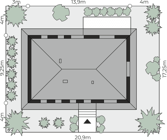 - Minimalne wymiary działki20.9 x 17.25m