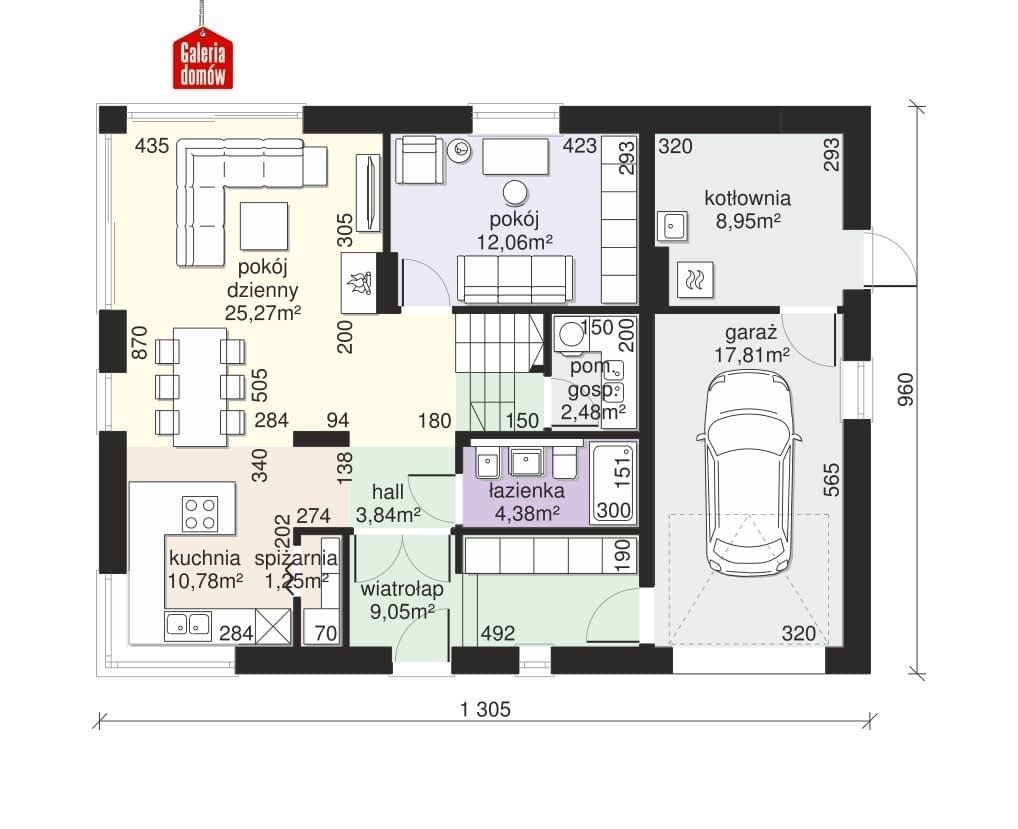 - Minimalne wymiary działki21.05 x 17.6m