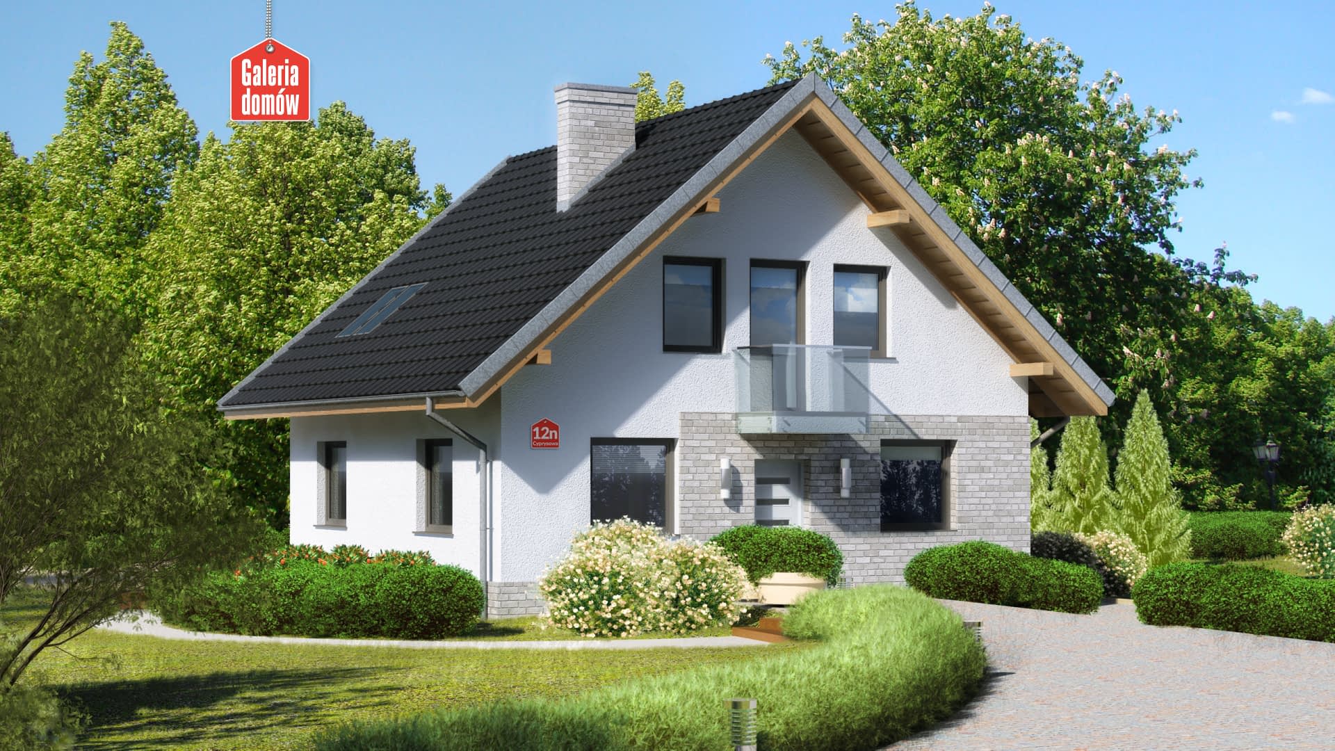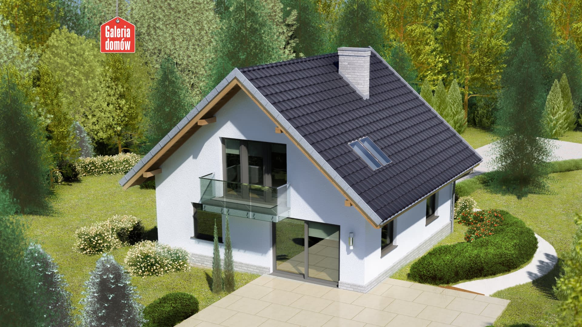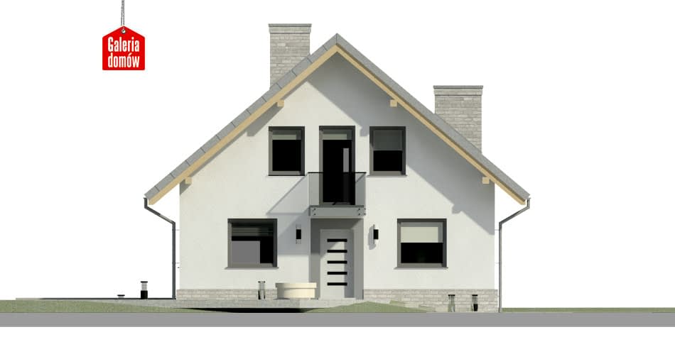 Nowoczesny dom z poddaszem, o prostej bryle przykrytej dwuspadowym dachem, architekturą nawiązujący do najlepszych trendów dzisiejszej sztuki projektowej. Szklane balkony, metaliczna stolarka aluminiowa, oryginalne oświetlenie i biała elewacja podkreślają oryginalny, współczesny charakter domu. Komfort użytkowania zapewnia funkcjonalny podział wnętrza na strefę dzienną i nocną. Na parterze znajduje się słoneczny salon, z którego przesuwnymi drzwiami można wyjść na taras, duża kuchnia, łazienka i dodatkowy pokój. Na poddaszu zaprojektowano trzy przytulne i jasne sypialnie oraz drugą łazienkę.Ekonomiczny i ergonomiczny dom będący ozdobą każdej działki.Konstrukcja