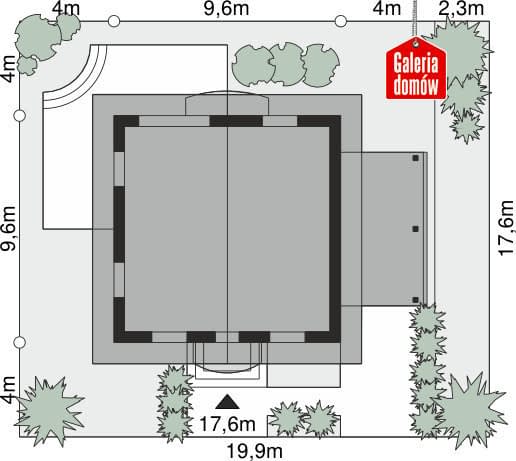 - Minimalne wymiary działki17.6 x 17.6m