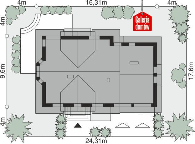 - Minimalne wymiary działki24.31 x 17.6m
