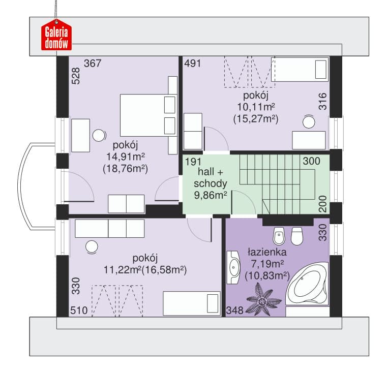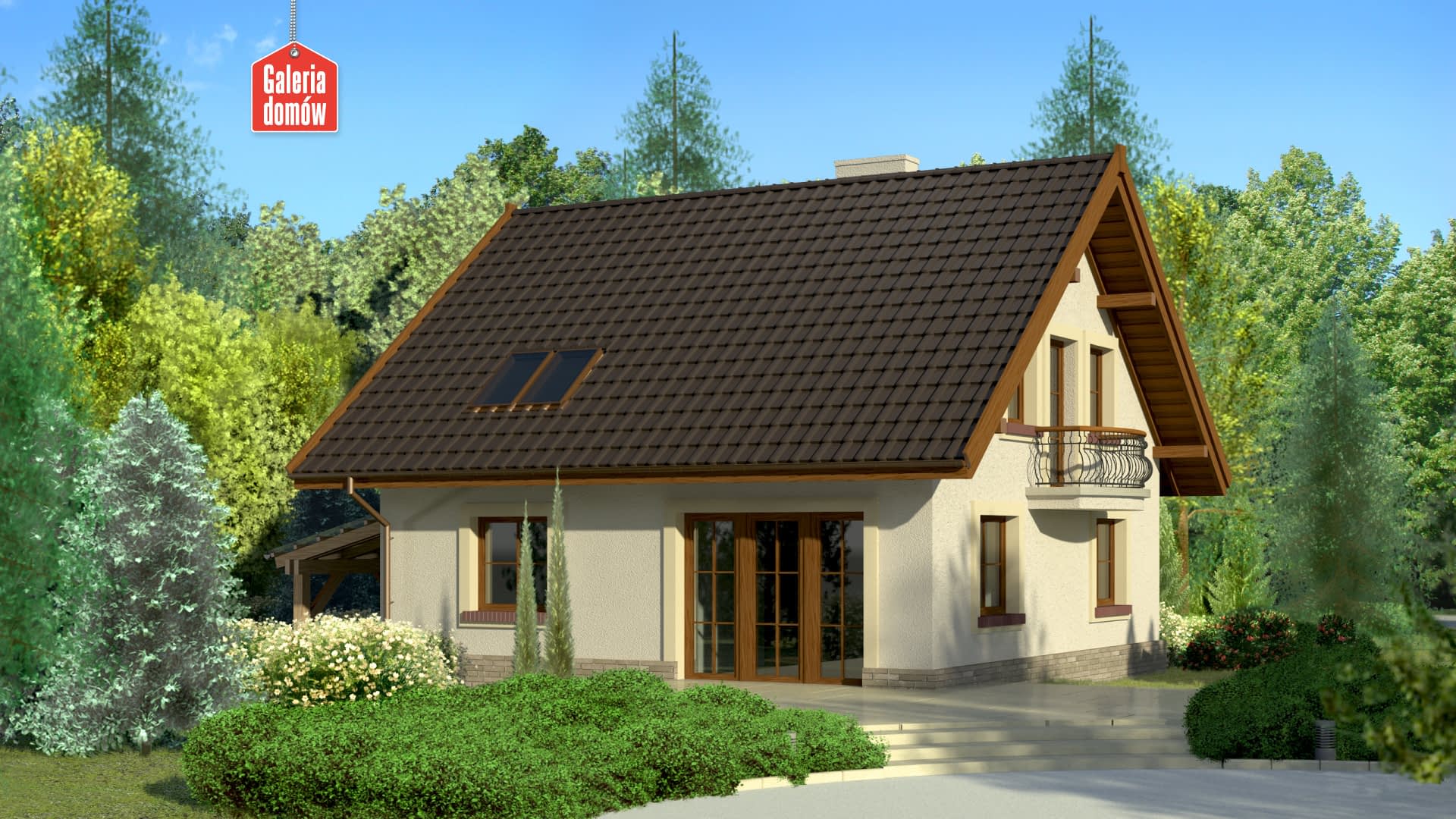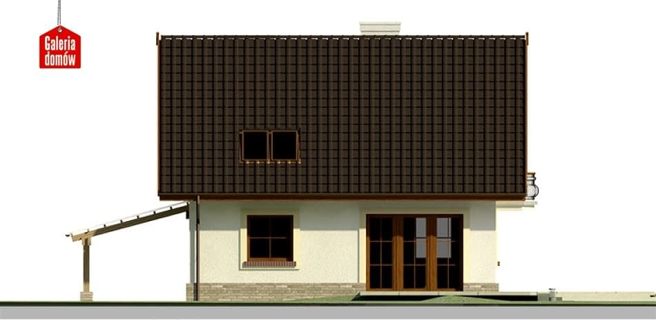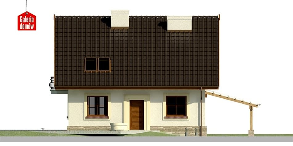 Stylowy dom z poddaszem i wiatą garażową. Symetryczna zwarta bryła przykryta jest dachem dwuspadowym, co upraszcza realizację. Ciepła kolorystyka oraz subtelne dodatki na elewacjach podkreślają spokojny charakter domu i jego wygodę. Komfort użytkowania zapewnia przejrzysty podział na część dzienną i nocną. Dodatkowy pokój na parterze to doskonałe miejsce na urządzenie np. pracowni czy gabinetu. Dom przeznaczony jest dla cztero- lub pięcioosobowej rodziny.Konstrukcja