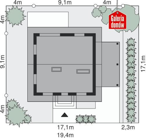 - Minimalne wymiary działki17.1 x 17.1m