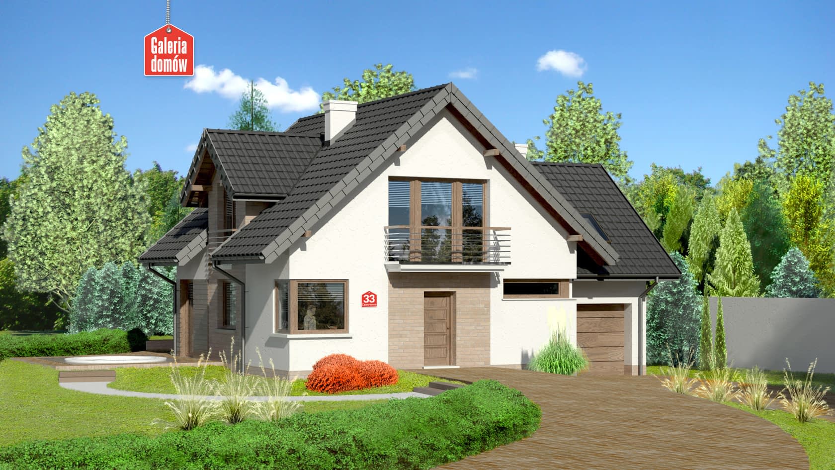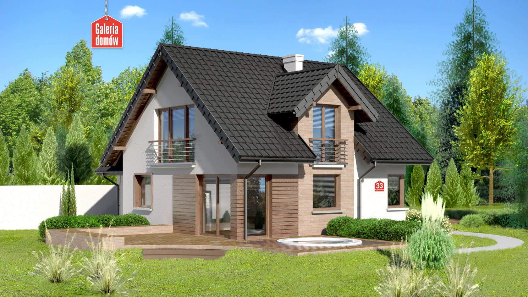 Dom przy Cyprysowej 33 to nasza propozycja projektowa dla miłośników domów o nowoczesnej nucie w architekturze. Przykładem tego może być zabawa z fakturą elewacji: umieszczenie na niej elementów paneli drewnianych, tynku, cegły (lub płytek klinkierowych). Atrybutami domu nowoczesnego są takie pomieszczenia jak kotłownia, spiżarnia, pralnia oraz duża sypialnia, w której z powodzeniem można zmieścić garderobę, a które znalazły swoje miejsce w tym projekcie. O ile na zewnątrz architekt eksponuje nowoczesny wygląd to program funkcjonalny wnętrza oparty jest na tradycyjnym podziale na część dzienną domu i umieszczoną na poddaszu część sypialną. Centralnym punktem domu jest pokój dzienny przeszklony z dwóch stron. Duże okna otwierają pomieszczenie na zewnątrz i dają poczucie obcowania z naturą. Projekt Domu przy Cyprysowej 33 to budynek z poddaszem i garażem o programie 6 pokojowym z otwartą kuchnią, rozplanowany na powierzchni użytkowej wynoszącej jedynie 114,77 m²!Konstrukcja