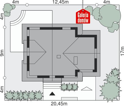 - Minimalne wymiary działki20.55 x 17.1m
