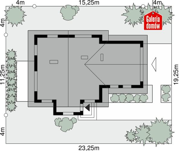 Dach: kąt nachylenia 40°, pokrycie - dachówka ceramiczna lub betonowa.