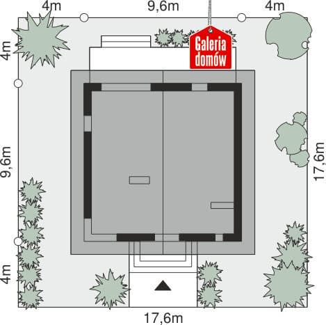 - Minimalne wymiary działki17.6 x 17.6m