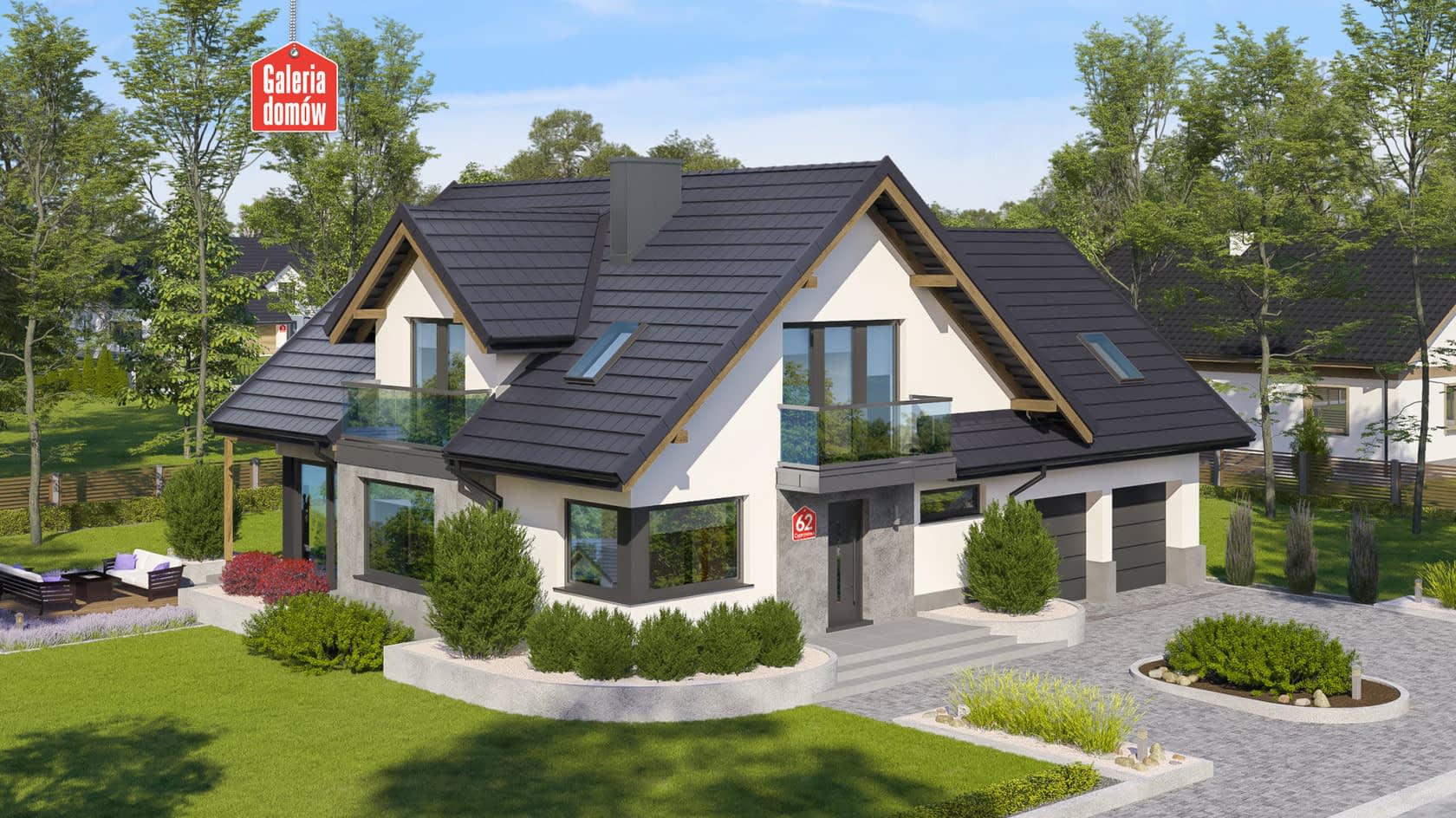 Dach: kąt nachylenia 40°, pokrycie - dachówka ceramiczna lub betonowa.