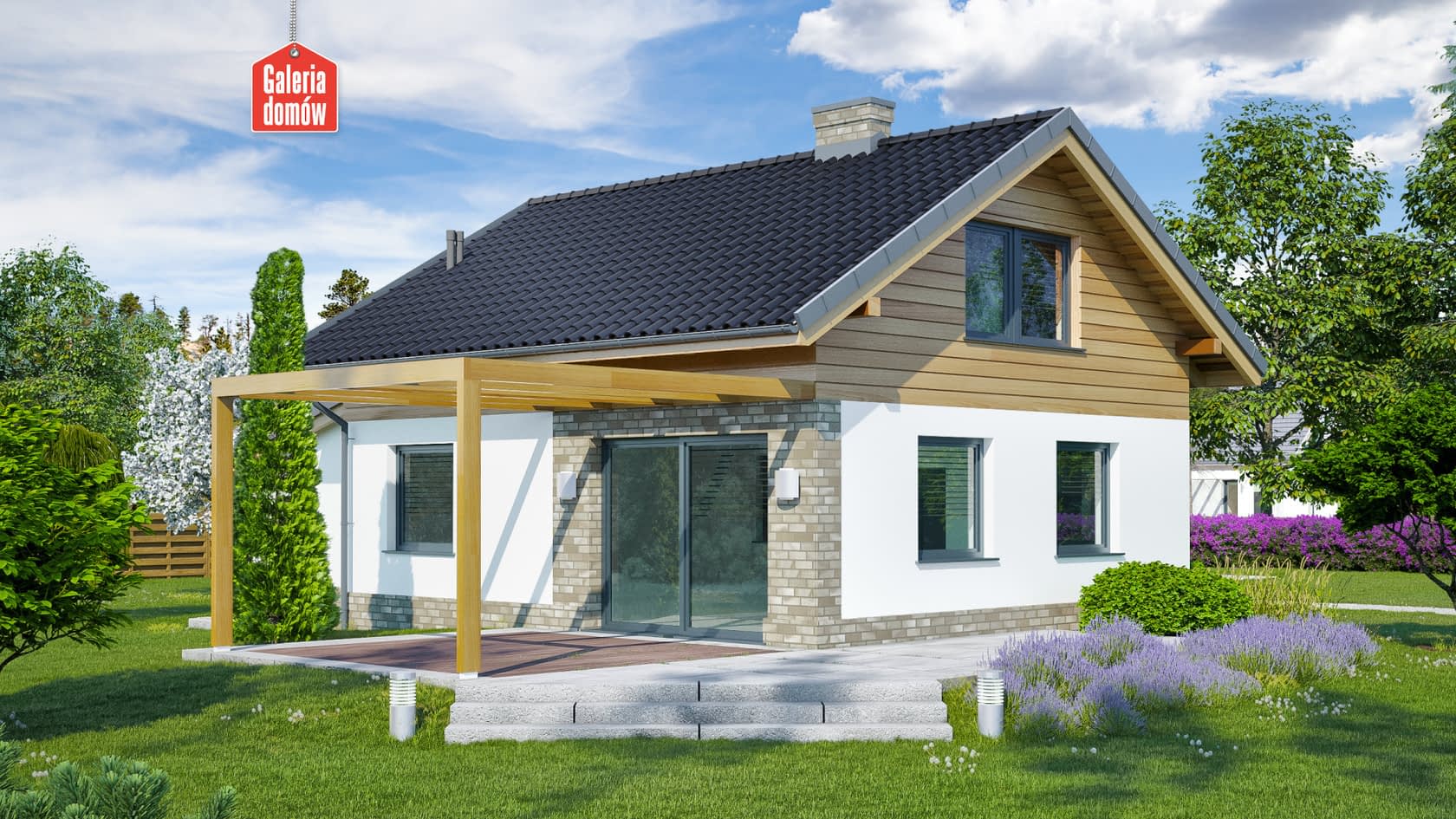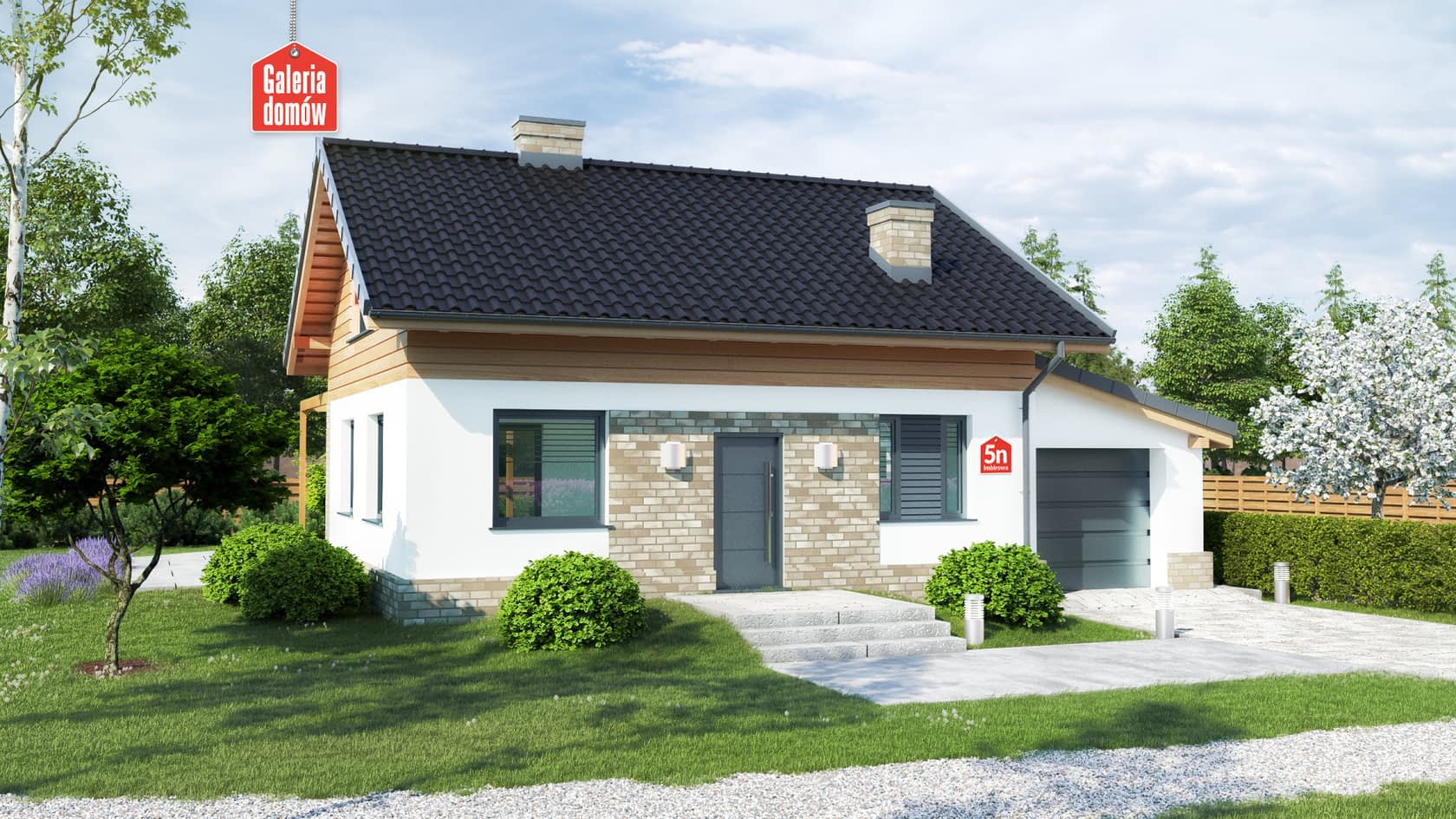 Dom przy Imbirowej 5 to gotowy projekt domu parterowego z użytkowym poddaszem i garażem jednostanowiskowym. Wykonany w technologii tradycyjnej murowanej, z więźbą o konstrukcji drewnianej. W skład programu użytkowego wchodzi otwarta przestrzeń dzienna, z salonem i kuchnią oraz trzy pokoje i dwie łazienki. Projekt posiada dodatkowy pokój na parterze oraz sporą kotłownię. Utrzymany w nowoczesnej stylistyce wykończenia, charakteryzuje się naturalnymi dodatkami i przyjemną kolorystyką elewacji. Prosta konstrukcja, zwarta bryła i przemyślane rozwiązania czynią go tanim i szybkim w budowie oraz ekonomicznym w eksploatacji. Dom energooszczędny dostosowany do aktualnych norm i warunków technicznych. Posiada charakterystykę energetyczną. Doskonale nadaje się na wąską działkę.Konstrukcja