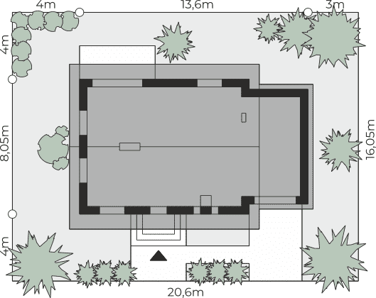 - Minimalne wymiary działki20.6 x 16.05m
