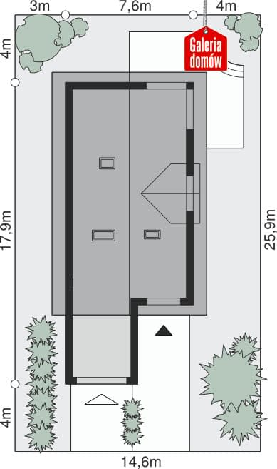 Dach: kąt nachylenia 40°, pokrycie - dachówka ceramiczna lub betonowa.