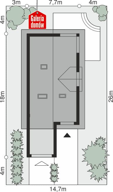 - Minimalne wymiary działki26 x 14.7m