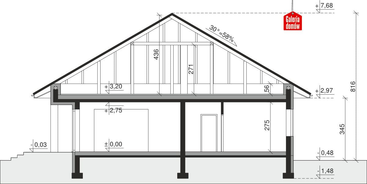 Dach: kąt nachylenia 30°, pokrycie - dachówka ceramiczna lub betonowa.