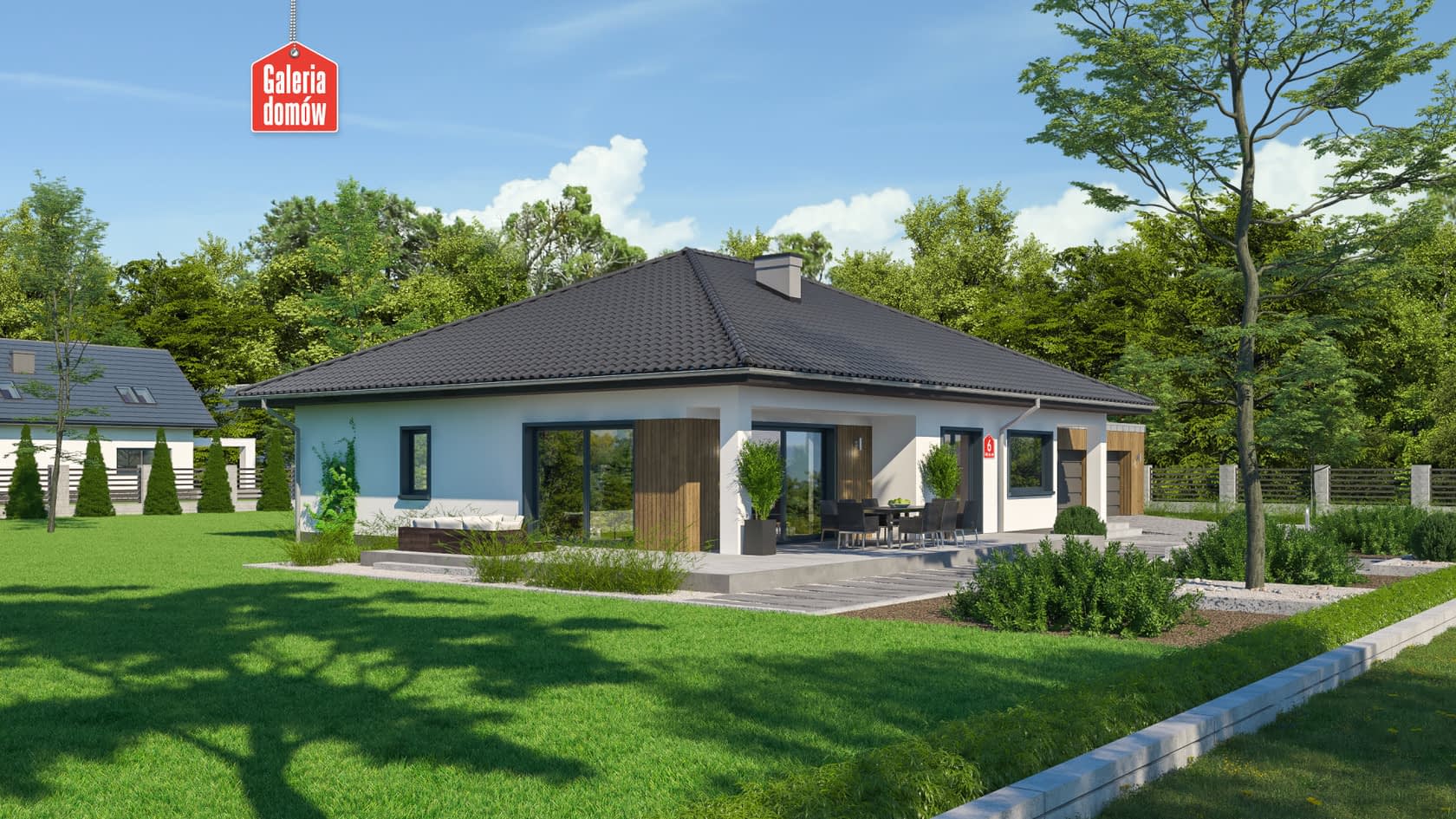 Dach: kąt nachylenia 25°, pokrycie - dachówka ceramiczna lub betonowa.