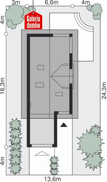 - Minimalne wymiary działki24.3 x 13.6m