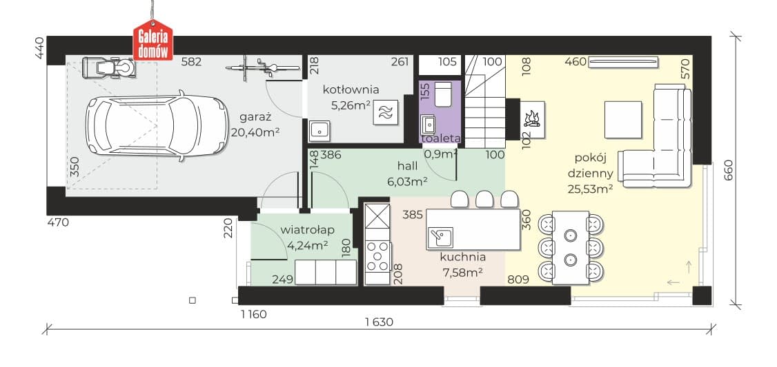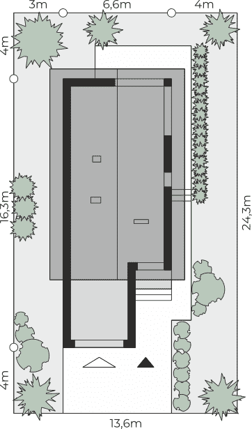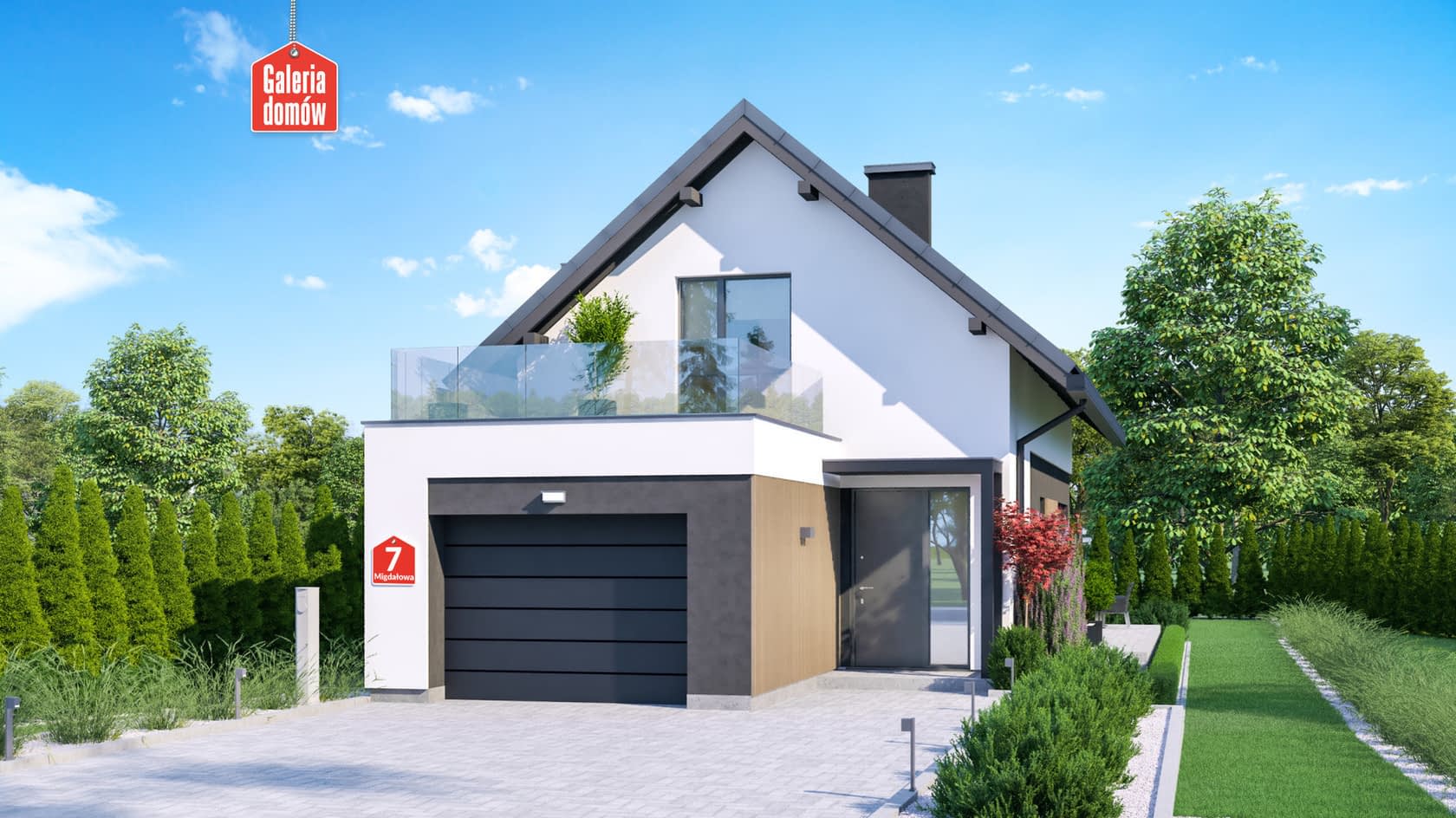 Dom w Migdałowej 7 to projekt domu jednorodzinnego o powierzchni użytkowej 92,57 m². Dom z poddaszem użytkowym i dachem dwuspadowym posiada garaż w bryle głównej budynku. Migdałowa 7 doskonale nadaje się do realizacji na wąskich działkach, o minimalnej szerokości 13,5 m. Układ funkcjonalny składa się z 4 pokoi, kuchni, 2 łazienek, garderoby oraz kotłowni. Na parterze znajduje się nasłoneczniona część dzienna z salonem o powierzchni 25 m² oraz otwartą kuchnią. Poddasze to przytulna część nocna. Znajdziemy tu 3 wygodne sypialnie z dostępem do francuskich balkonów oraz główną łazienkę. Sypialnia typu master bedroom wychodzi na przestronny taras. Projekt opracowany zgodnie z normami technicznymi WT 2021. Został zaprojektowany z myślą o warunkach, jakie powinny w przyszłości spełniać projekty domów zeroemisyjnych.Konstrukcja
