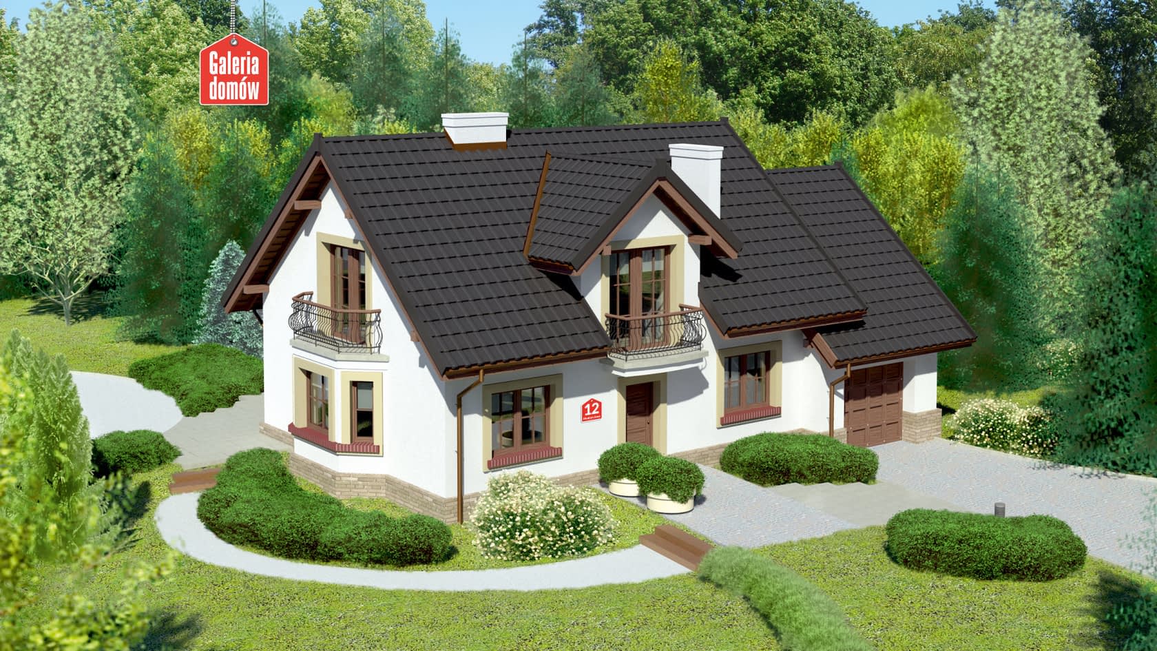 Dom przy Modrzewiowej 12 to projekt wygodnego domu z mieszkalnym poddaszem, wyraźnie wydzieloną częścią dzienną na parterze oraz prywatną na poddaszu. Na parterze znajduje się obszerny, połączony z jadalnią i kuchnią salon, z którego prowadzi wyjście na taras. Dodatkowy pokój może być gabinetem lub sypialnią dla gości. Bogaty program parteru uzupełniają spiżarnia, łazienka, pralnia i garaż. Za garażem zlokalizowano kotłownię. Na poddaszu znajdują się trzy wygodne sypialnie, łazienka, garderoba oraz zaprojektowany nad garażem strych. Wszechstronność tego projektu polega na uchwyceniu odpowiednich proporcji bryły i zespolenie ich z funkcjonalnym układem pomieszczeń.Konstrukcja