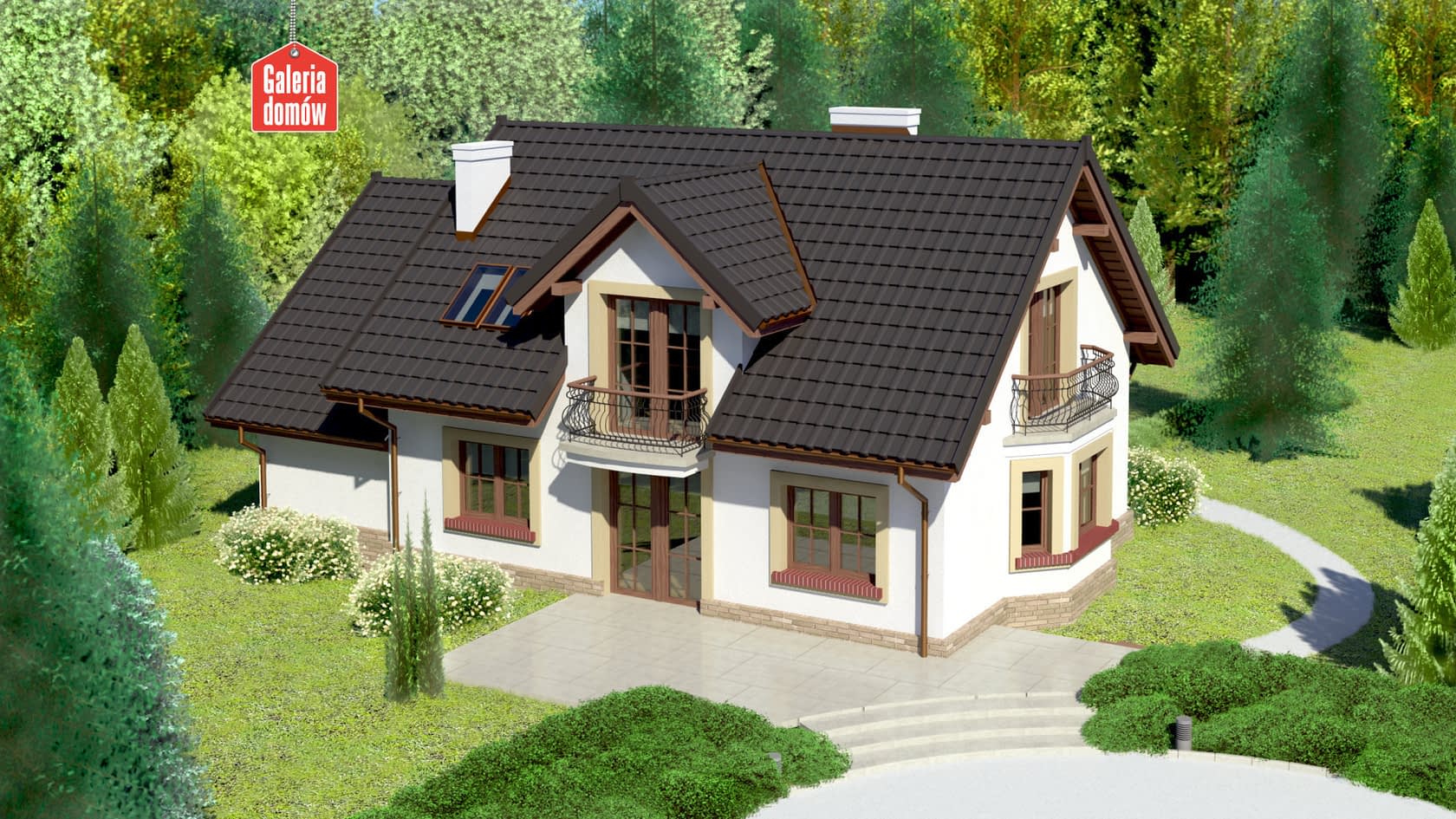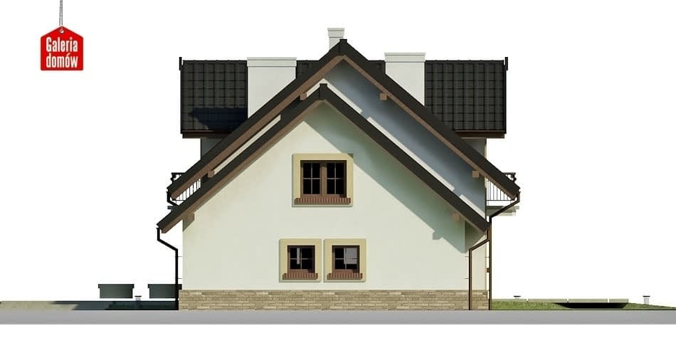 Dach: kąt nachylenia 40°, pokrycie - dachówka ceramiczna lub betonowa.