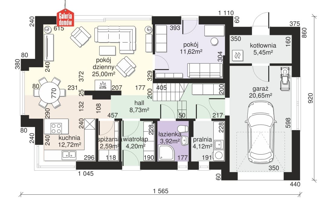 - Minimalne wymiary działki23.65 x 17.2m