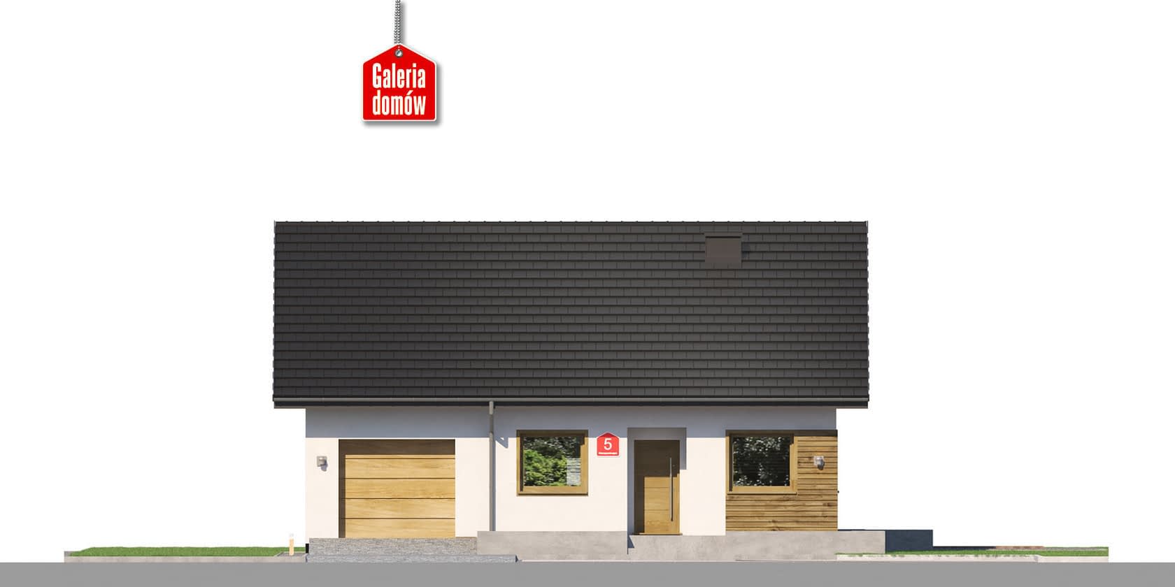 Projekt domu przy Niezapominajek 5 to dom o powierzchni użytkowej 74.76 m². Parterowy budynek z dachem dwuspadowym o kalenicy równoległej do drogi. Zwarta bryła oparta na planie kwadratu gwarantuje ekonomiczną i szybką budowę.Wnętrze podzielono na strefę dzienną i nocną. Część dzienna składa się z otwartej kuchni i słonecznego salonu. Mamy tu miejsce na kominek, wygodną sofę i telewizor. Kuchnię oddziela od pokoju dziennego funkcjonalna lada barowa.Część nocną stanowią 2 pokoje oraz dzieląca je łazienka. Dom posiada jednostanowiskowy garaż umieszczony w bryle budynku. Za garażem zaprojektowano dużą kotłownię, która dale możliwość wyboru sposobu ogrzewania. Projekt został opracowany zgodnie ze standardami WT 2021. Niewielki dom energooszczędny, tani i szybki w budowie.Konstrukcja