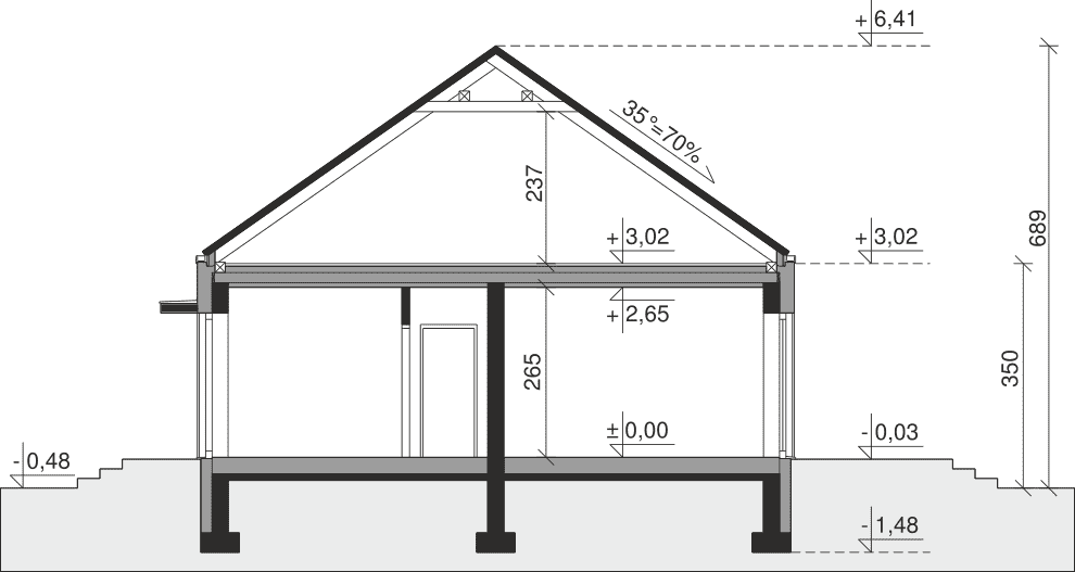 Dach: kąt nachylenia 35°, pokrycie - dachówka ceramiczna lub betonowa.