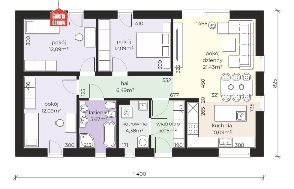 Projekt gotowy Dom przy Olchowej 9 to budynek jednorodzinny, parterowy o powierzchni użytkowej 85 m². Tani i prosty w realizacji, ekonomiczny w użytkowaniu. Wnętrze mieści 4 pokoje, otwartą kuchnię, kompletnie wyposażoną łazienkę, oraz kotłownię ze stanowiskiem na pralkę. Ogrzewanie podłogowe na gaz lub pompę ciepła. Projekt domu bez garażu, z dachem dwuspadowym o prostej konstrukcji i kalenicy równoległej do drogi. Nowoczesna stylistyka elewacji została osiągnięta dzięki minimalizmowi i kontrastom kolorystyki bieli i ciemnej stali. Dom przy Olchowej 9 został zaprojektowany według warunków technicznych WT 2021. Dodatkowe projekty instalacji solarnej, fotowoltaicznej i wentylacji mechanicznej z rekuperacją. Konstrukcje budynku są zgodne z normami eurokod. Dom przy Olchowej 9 zaprojektowano w technologii murowanej z tradycyjną więźbą drewnianą i stropem żelbetowym, który daje możliwość adaptacji poddasza na cele mieszkalne.Konstrukcja