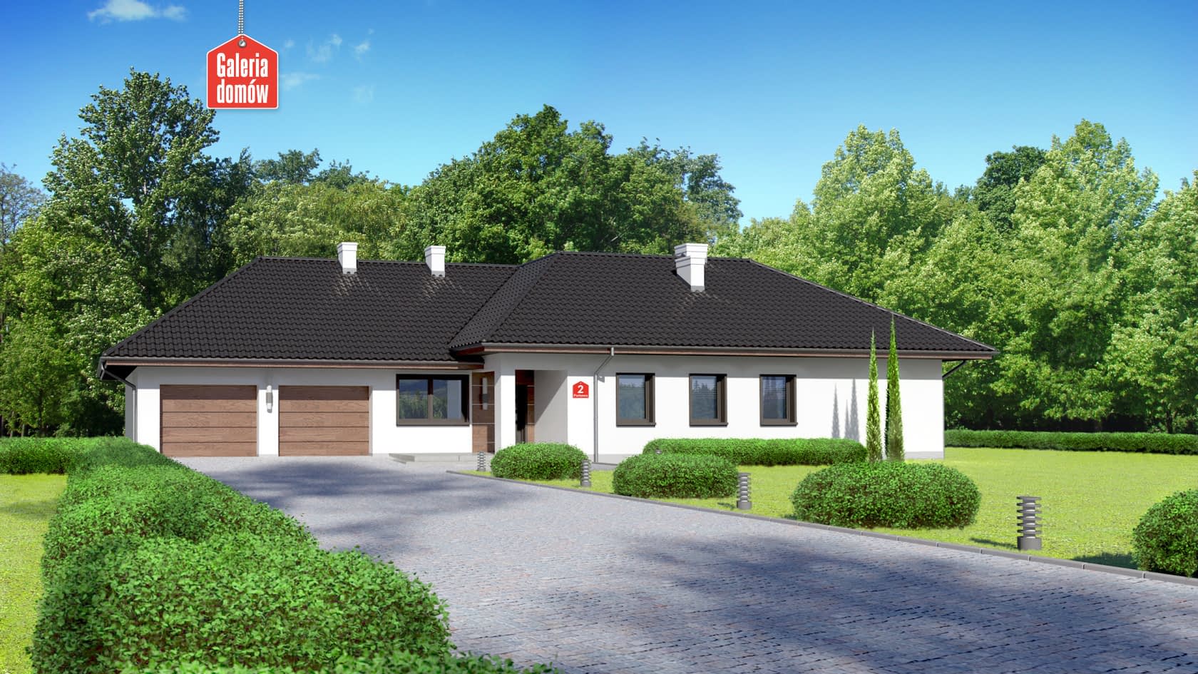 Parterowa willa rodzinna z czterema niezależnymi pokojami, eleganckim salonem, ergonomiczną kuchnią i podwójnym garażem. Parkowa 2 należy do grupy domów energooszczędnych. Projekt zawiera schemat instalacji mechanicznej z rekuperacją oraz system solarny. Ogrzewanie gazowe sprawia, iż dom nie tylko dba o oszczędność energii, ale jest również ekologiczny. Układ funkcjonalny zaplanowano tak, aby każdy z domowników miał komfortowy dostęp zarówno do części wspólnych, jak i łazienki. Zaplecze gospodarcze tego okazałego domu stanowi duża kotłownia, pralnia, garderoba i podwójny garaż. Z zieloną częścią ogrodu łączą budynek dwa tarasy, poranny – od kuchni i wypoczynkowy, ulokowany przy słonecznym salonie. Stylistyka wykończenia zewnętrznego nawiązuje do najmodniejszych trendów architektonicznych i czyni dom nowoczesnym, a zarazem eleganckim.Konstrukcja