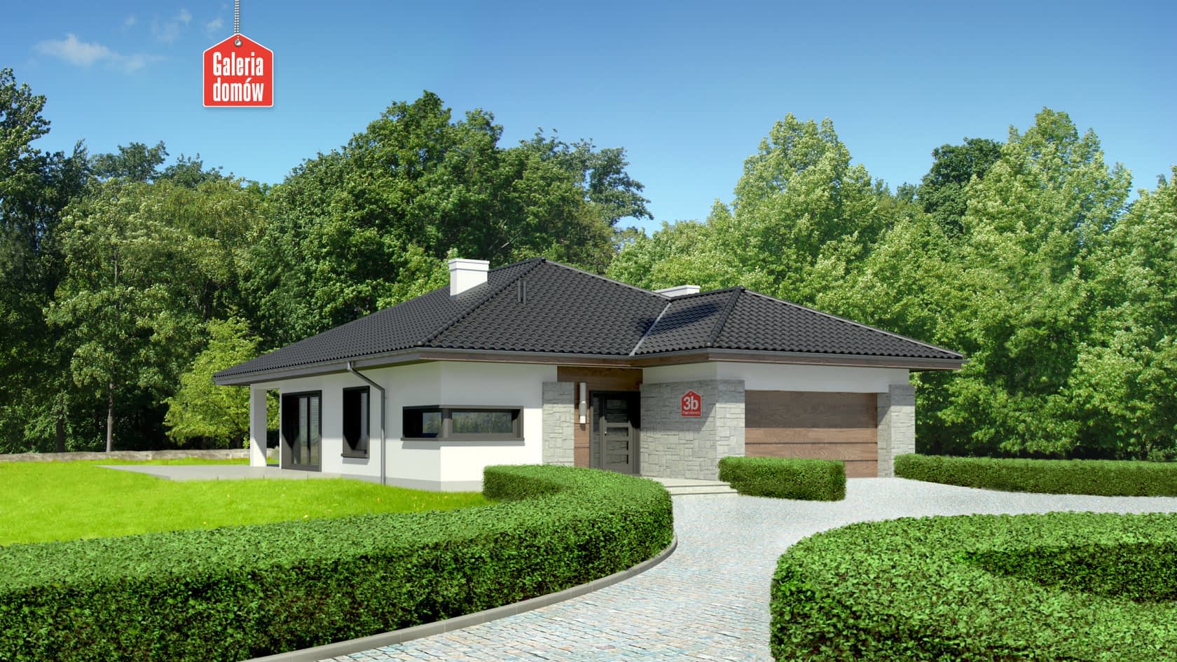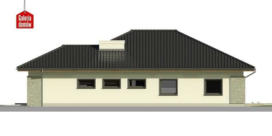 Nowoczesny wygląd, dobrze dobrane proporcje i atrakcyjny zestaw barw - tak w kilku słowach można opisać ten projekt domu. To duża przestrzeń, rozłożona w ciągu funkcjonalnym od wjazdu do garażu po najodleglejszą sypialnię. Brak podziałów maksymalnie otwartej części dziennej, część prywatna zamknięta przed wzrokiem gości. Częściowo zadaszony, zgrabny taras przy wyjściu z salonu. Projekt nadaje się do zrealizowania na węższych działkach nawet o szerokości 19.65m, ale też dłuższych, przynajmniej na 27m.Konstrukcja