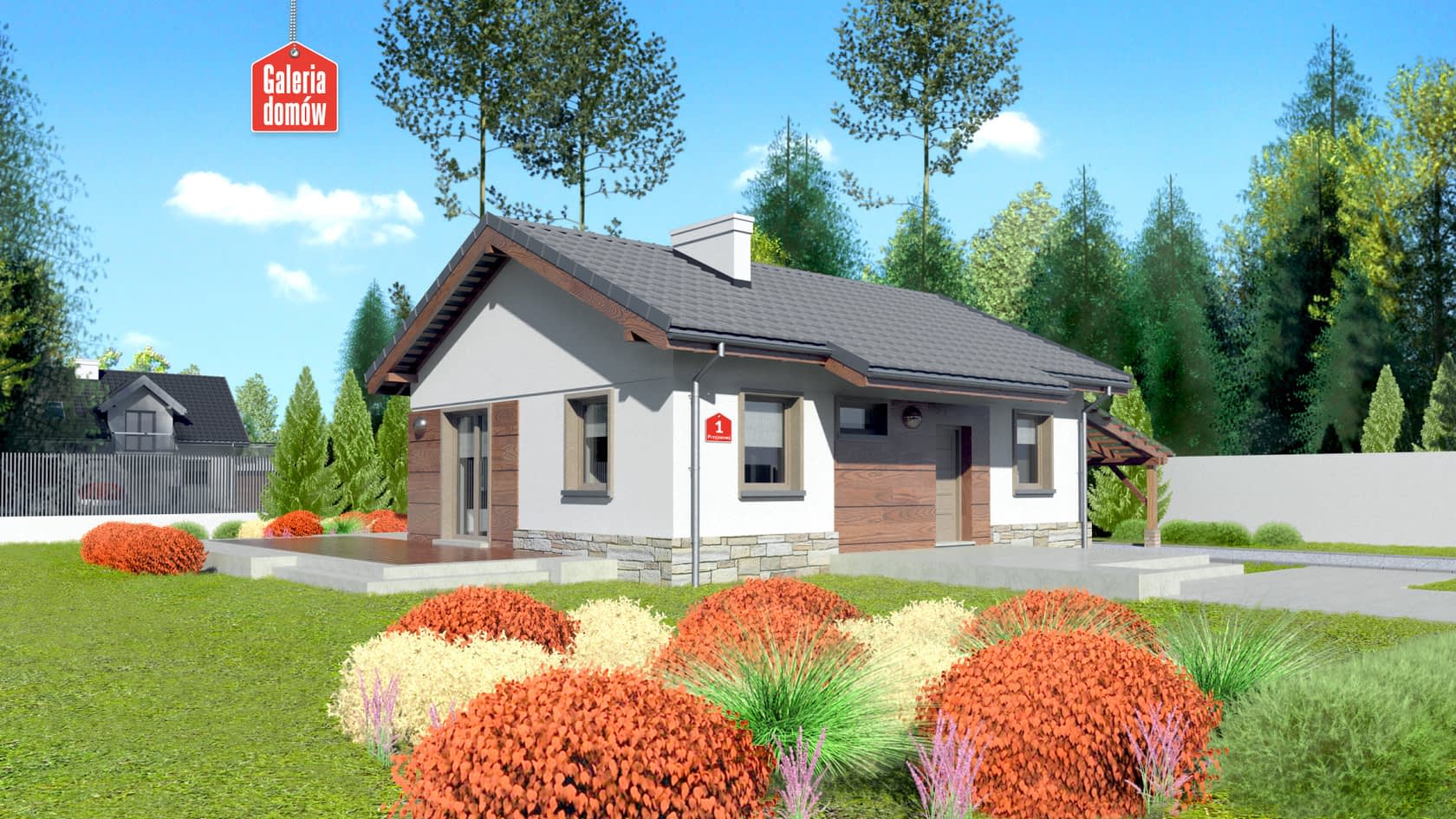 Zgrabny domek, który na niewielkiej powierzchni (niespełna 70 metrów!) mieści salon z aneksem kuchennym, trzy pokoje i łazienkę. Pomimo skromnych rozmiarów wszystkie pomieszczenia są wygodne i ustawne. Dzięki temu Dom przy Przyjemnej jest realną alternatywą dla osób, które stoją przed wyborem mieszkania i budową własnego domu. Jest łatwy w realizacji, ekonomiczny i oszczędny w eksploatacji. Przy bocznej ścianie zaprojektowano wiatę garażową. Dom, który pomoże zrealizować marzenia o "byciu na swoim".Konstrukcja