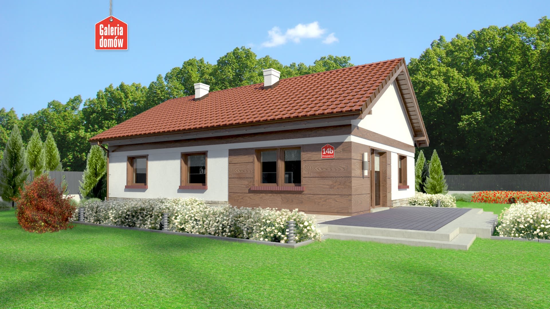Rodzina projektów z serii Dom przy Przyjemnej powiększyła się o kolejny wariant parterowego projektu domu. Dom przy Przyjemnej 14 bis stylistycznie nawiązuje do Domu przy Przyjemnej 12 bis. Estetyka elewacji oparta jest o ten sam zestaw elementów architektonicznych oraz paletę barw. Zastosowany program funkcjonalny obejmuje układ pomieszczeń o wielkości proporcjonalnie dobranej do rozmiarów domu. Oprócz pomieszczeń przeznaczonych na strefę pobytu dziennego - pokoju dziennego, kuchni i hallu, w części nocnej znajdują się trzy sypialnie i wygodna łazienka z oknem. Pomieszczenie kotłowni w przypadku zastosowania ogrzewania gazowego będzie mogło funkcjonować także jako pralnia. Projekt nie posiada wbudowanego garażu.Konstrukcja