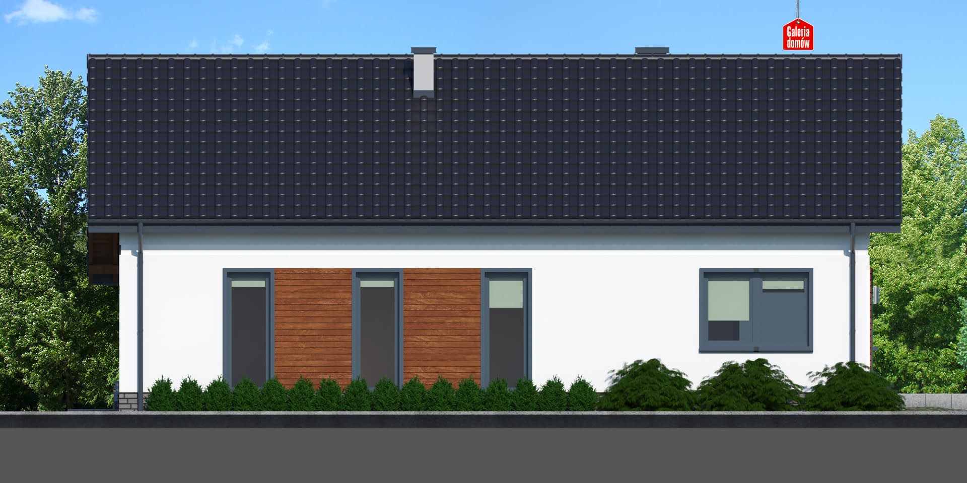 Nowoczesny dom parterowy, wyposażony w system instalacji solarnej i wentylację mechaniczną z odzyskiem ciepła, projektowany w systemie tradycyjnym, murowanym. Płaski, dwuspadowy dach oparto na drewnianej więźbie krokwiowej. Minimalizm w ilości ścian nośnych sprawia, iż dom jest tani i szybki w budowie. Otwarta strefa dzienna składa się ze słonecznego pokoju z kominkiem i otwartej kuchni. W jadalni, ulokowanej na granicy kuchni i salonu z powodzeniem mieści się duży stół. Taras i przydomowy ogród dostępny jest w całej okazałości dzięki drzwiom przesuwnym. Część wypoczynkowa domu to dwie sypialnie i łazienka, z narożna wanną i kabiną prysznicową. Kotłownia została zaprojektowana tak, by pomieściła pralnię i była wielofunkcyjnym miejscem, w którym można magazynować środki czystości i sprzęty codziennego użytku. Solidny strop pozwala na zagospodarowanie dużego strychu według indywidualnego uznania. Atutem budynku jest dwustanowiskowy garaż z wyjściem do ogrodu. Dom przy Przyjemnej 19 to ciekawe rozwiązanie, które zainteresuje inwestorów chcących tanio i szybko wybudować elegancki, parterowy dom z dwustanowiskowym garażem. Doskonała propozycja dla 4-5 osobowej rodziny.Konstrukcja