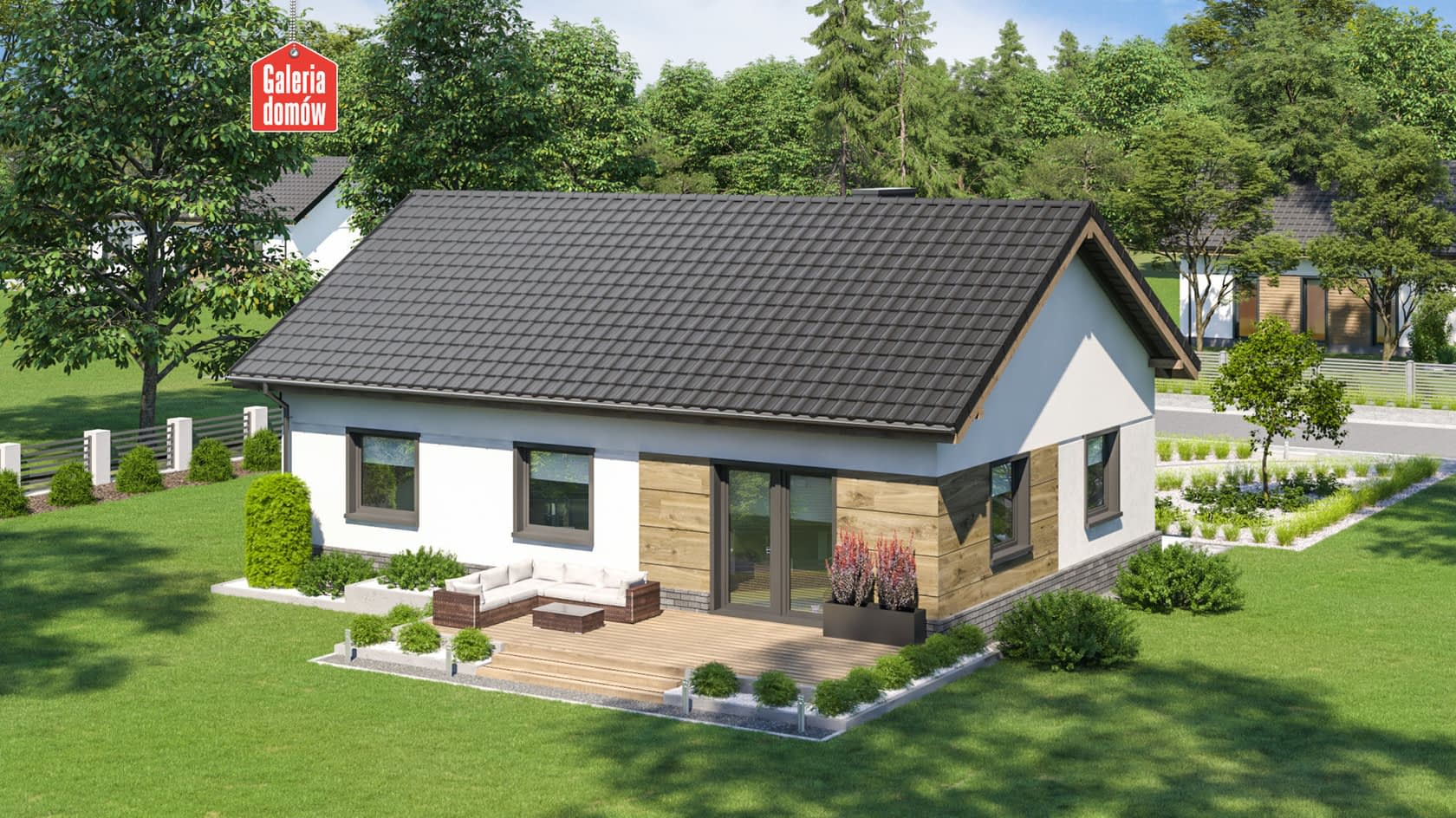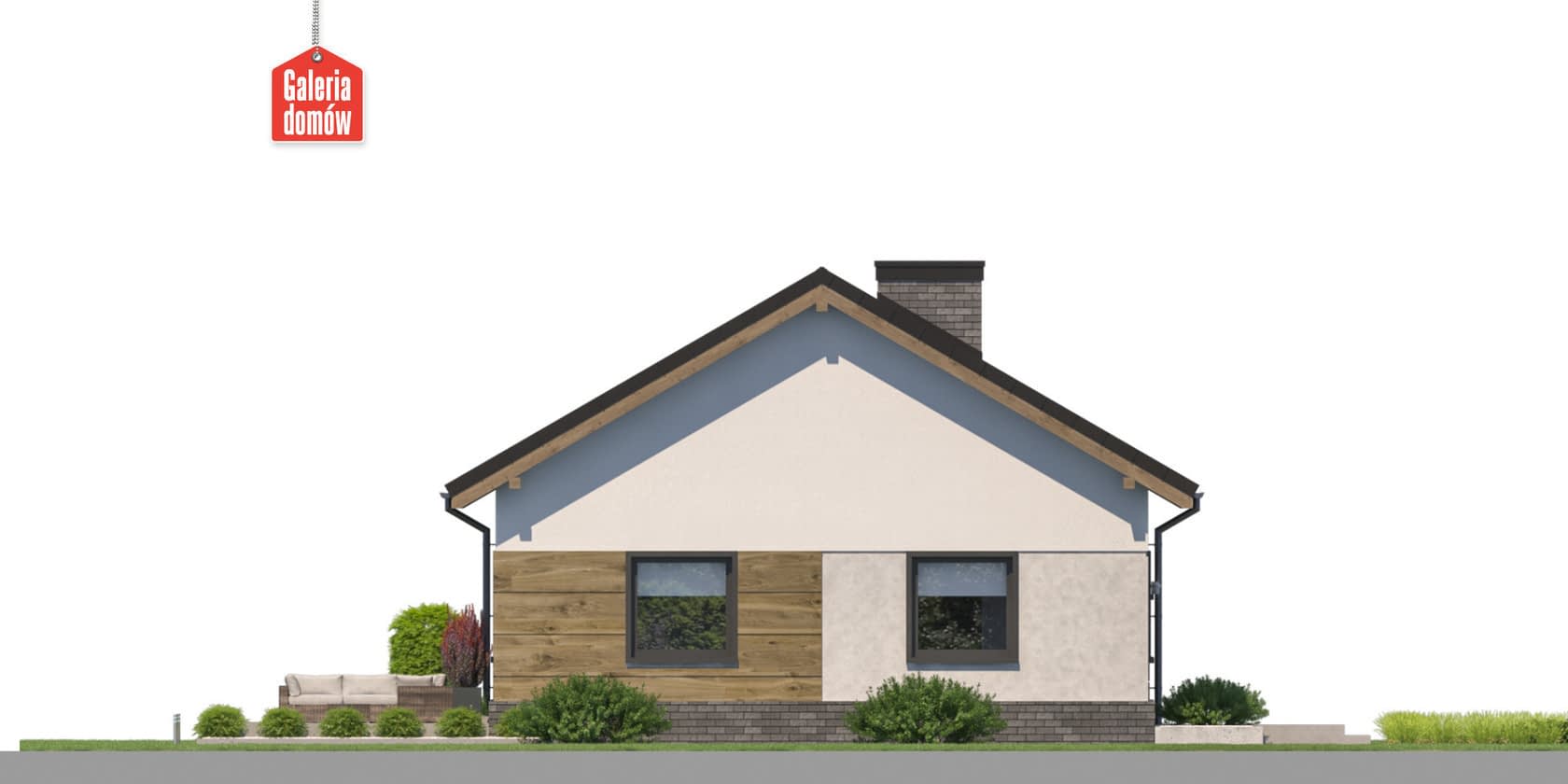 Gotowy projekt Dom przy Przyjemnej 35 to budynek parterowy, jednorodzinny, bez garażu. Zaprojektowany w technologii murowanej, z dachem dwuspadowym o kalenicy równoległej do drogi.Układ funkcjonalny zawiera 4 pokoje, otwartą kuchnię, łazienkę oraz kotłownię. W domu przewidziano ogrzewanie gazowe, z możliwością zmiany w trakcie przystosowania projektu do warunków lokalnych. Przyjemna 35 należy do grupy projektów energooszczędnych. Dzięki ekonomicznej konstrukcji budynek można zrealizować szybko i stosunkowo niskim nakładem finansowym. Dom przy Przyjemnej 35 cechuje się zwartą bryłą i prostą formą. Nowoczesna stylistyka elewacji została uzyskana dzięki kombinacji ciepłych kolorów okładziny drewnianej i chłodnych barw stolarki okiennej. Doskonała propozycja dla 4-5 osobowej rodziny.Konstrukcja