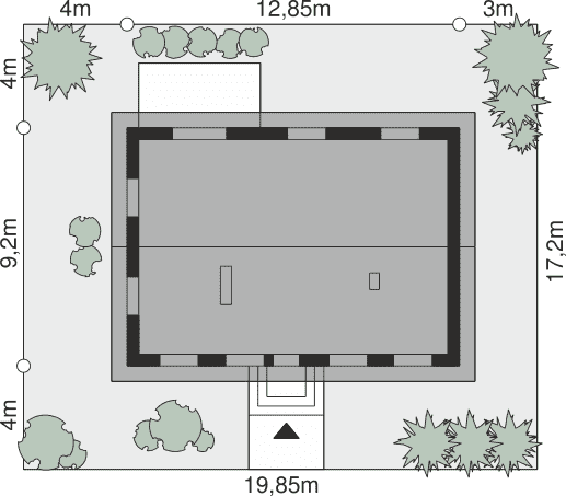 - Minimalne wymiary działki19.85 x 17.2m