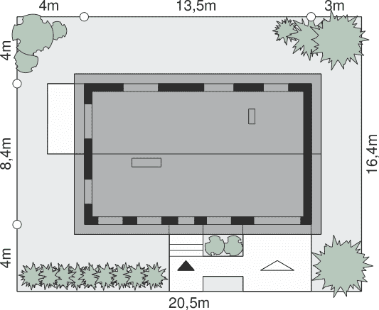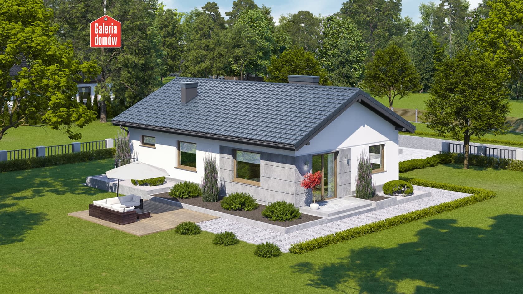 Dach: kąt nachylenia 25°, pokrycie - dachówka ceramiczna lub betonowa.
