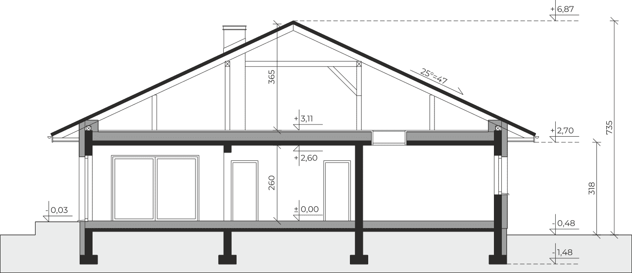 - Wysokość domu7.35 m