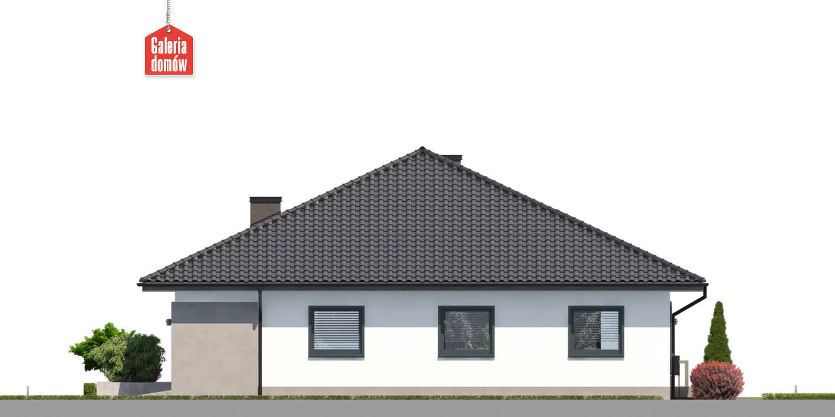 Dach: kąt nachylenia 25°, pokrycie - dachówka ceramiczna lub betonowa.