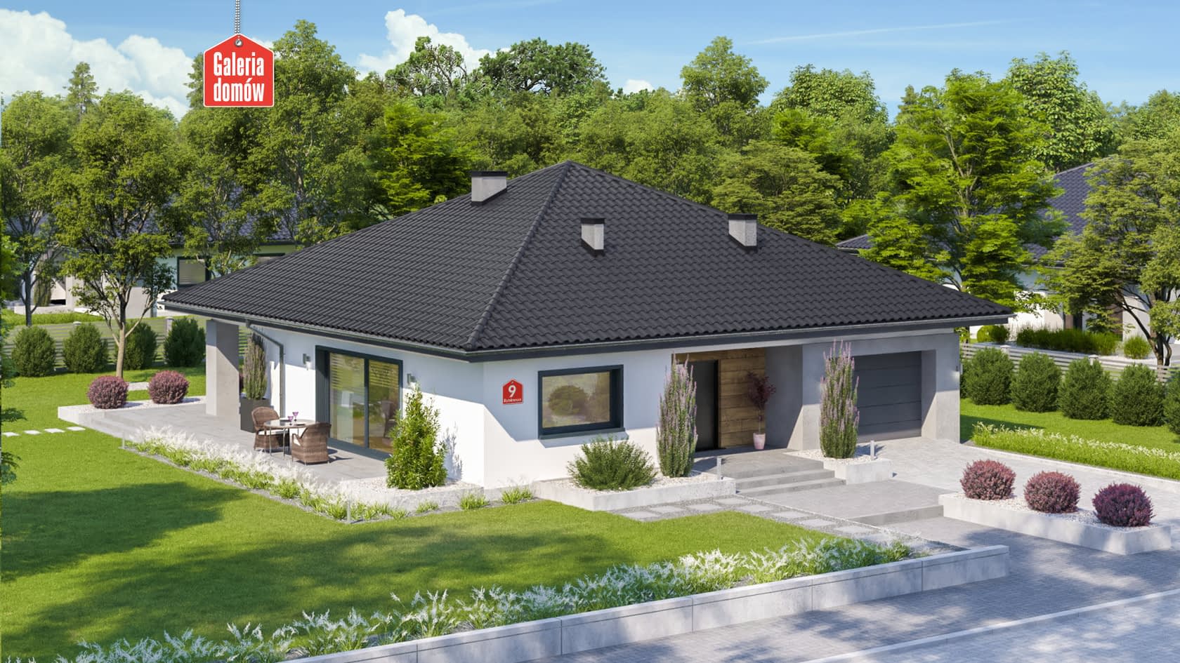 Dom przy Rubinowej 9 to nowoczesny projekt domu parterowego z dachem czterospadowym. Dom z pojedynczym garażem w bryle budynku. Program funkcjonalny zawiera salon z wyjściem na zadaszony taras, otwartą kuchnię i trzy sypialnie. Rubinowa 9 posiada dużą łazienkę oraz mniejszą toaletę. Zaplecze użytkowe to pokój gospodarczy i kotłownia. Dom zaprojektowany w technologii murowanej z drewnianą więźbą tradycyjną. Projekt domu energooszczędnego zgodny z warunkami technicznymi WT 2021. Doskonała propozycja dla 4-5 osobowej rodziny.Konstrukcja
