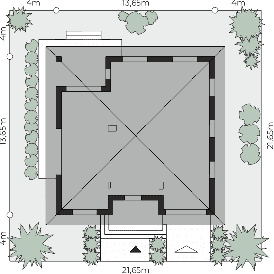 - Minimalne wymiary działki21.65 x 21.65m