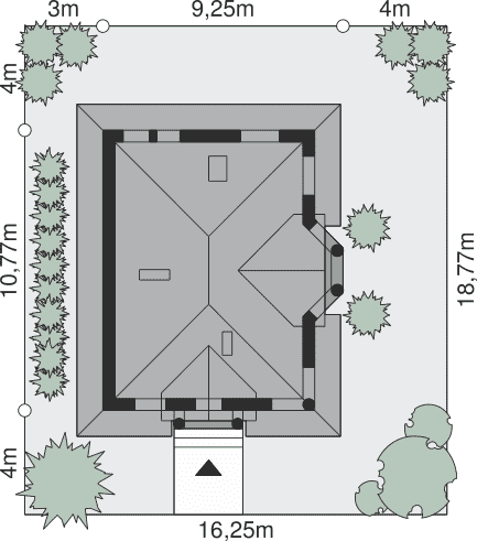 - Minimalne wymiary działki18.77 x 16.25m