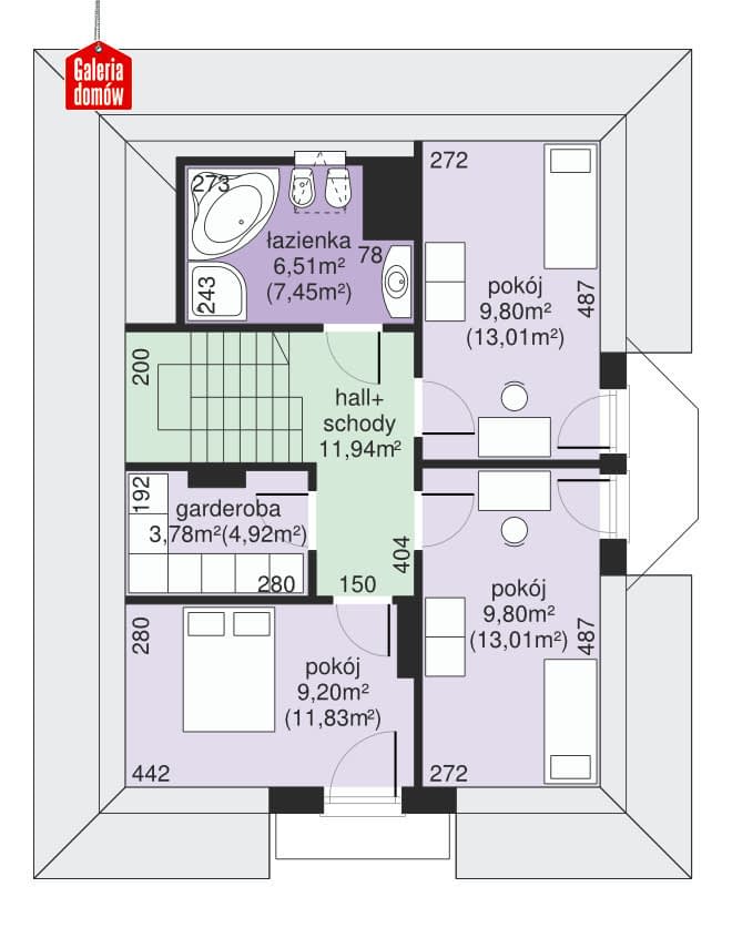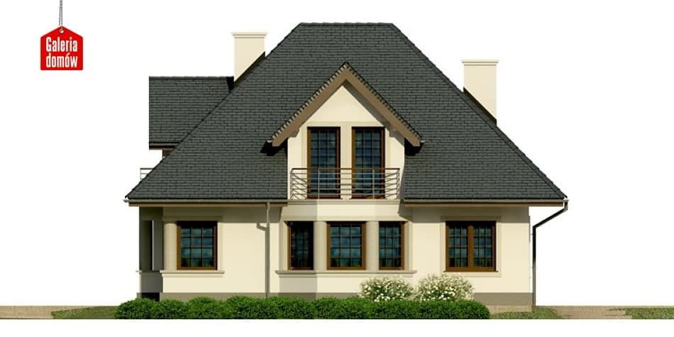 Interesująca propozycja dla osób poszukujących funkcjonalnego wnętrza w tradycyjnej formie. Regularna i symetryczna bryła, przykryta stromym kopertowym dachem, na pewno zwróci uwagę, ale jednocześnie doskonale wpisze się w każdy krajobraz. Uroku dodają ciepła kolorystyka elewacji, szprosy w oknach, balkony i wykusz. Otwarty parter to wygodna strefa wspólna służąca spędzaniu wolnego czasu w gronie rodziny, a także przyjmowaniu znajomych. W wydzielonej części gospodarczej znajduje się kotłownia i pralnia. Poddasze zajmują trzy funkcjonalne sypialnie, garderoba i łazienka. Wygodnie może tu zamieszkać nawet pięcioosobowa rodzina.Konstrukcja